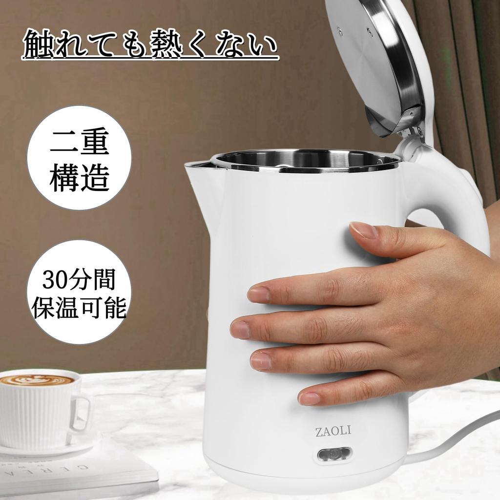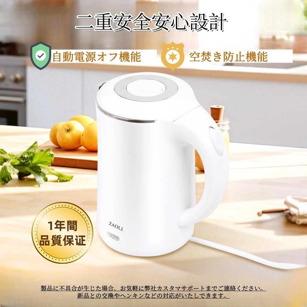 Электрочайник ZAOLI, небольшой, 1,0 л, 1200 Вт, внутренняя часть из нержавеющей стали, стильный, предотвращение сухой готовки, автоматическое отключение, двойные стенки, не горячий на ощупь, легко чистить, сертифицирован PSE [гарантия качества 1 год] ZL-K10-P Белый