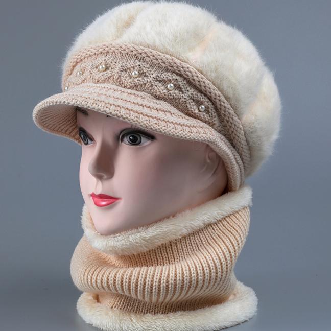 Комплект из шапки и шарфа, женская зимняя утолщенная шерстяная шапка, шапка для пожилых мам, вязаная шапка из кроличьей шерсти, теплая хлопковая шапка для бабушек — купить товар онлайн с бесплатной доставкой по всему миру!