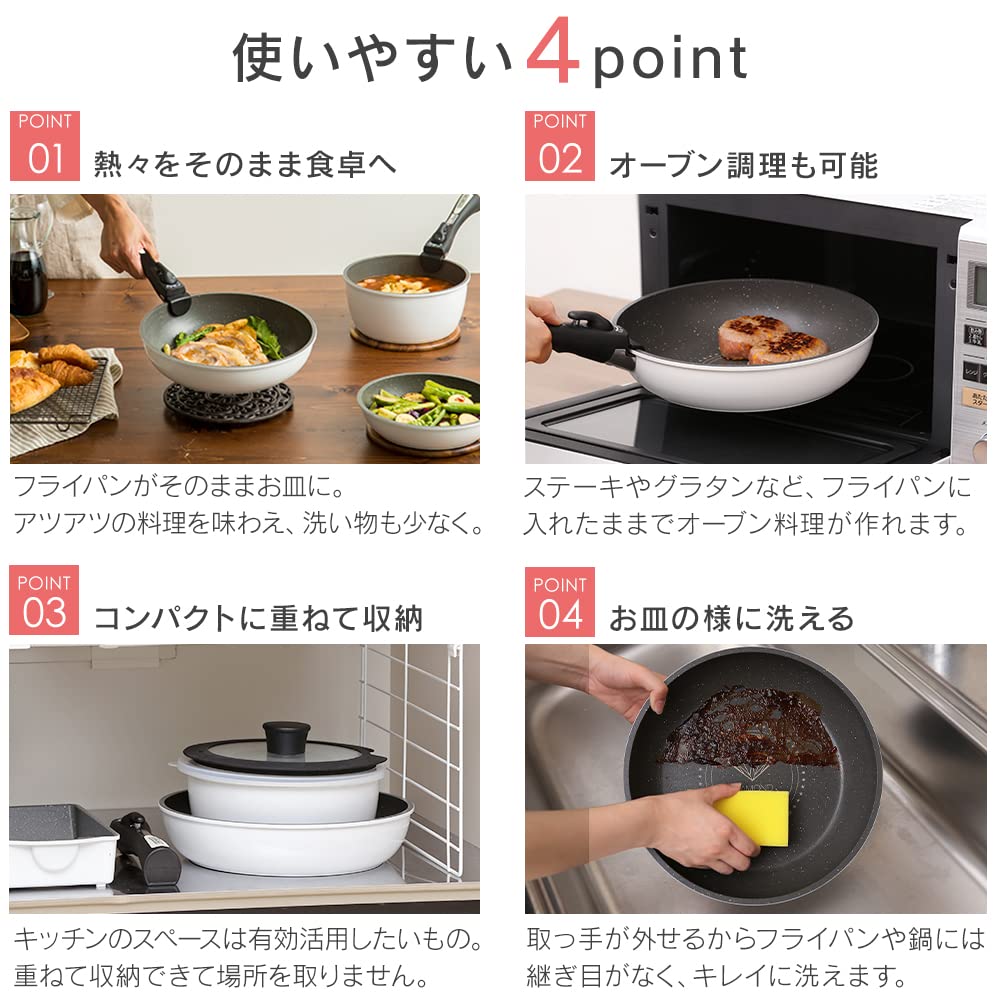 [Размер товара (см)/вес] Сковорода 26см: Диаметр 27,3 x Высота примерно. 6.1/Приблизительно. 707г, Кастрюля 20см: Диаметр 21,3 x Высота примерно. 9,5/приблизительно. 580г, Кастрюля 16см: Диаметр ок.. 17,3 x Высота примерно. 8/приблизительно. 419 г, яичная сковорода: ширина ок.. 22,5 x глубина примерно. 13,9 x высота примерно. 5.3/приблизительно. 420г