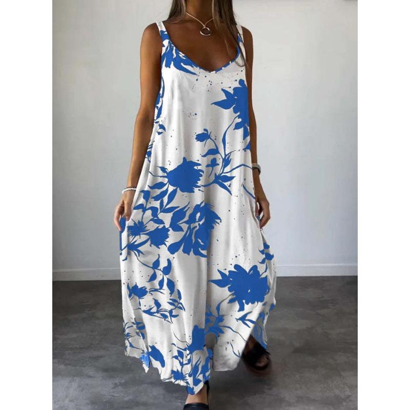 YYFS Женская мода лето весна цветочный узор принт без рукавов с v-образным вырезом свободная талия повседневные платья