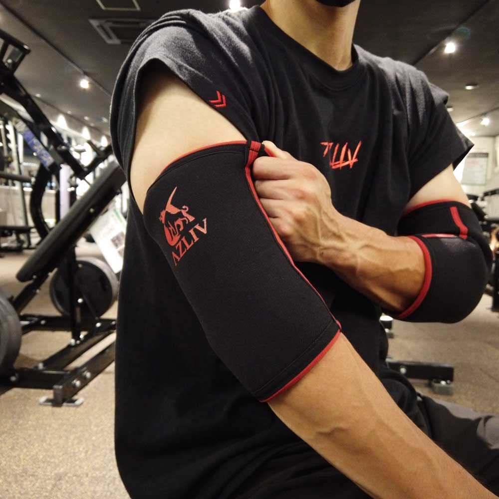 AZLIV 3 мм Налокотник Поддержка локтя Тренировка мышц Силовая тренировка Жим штанги (Красный, М)