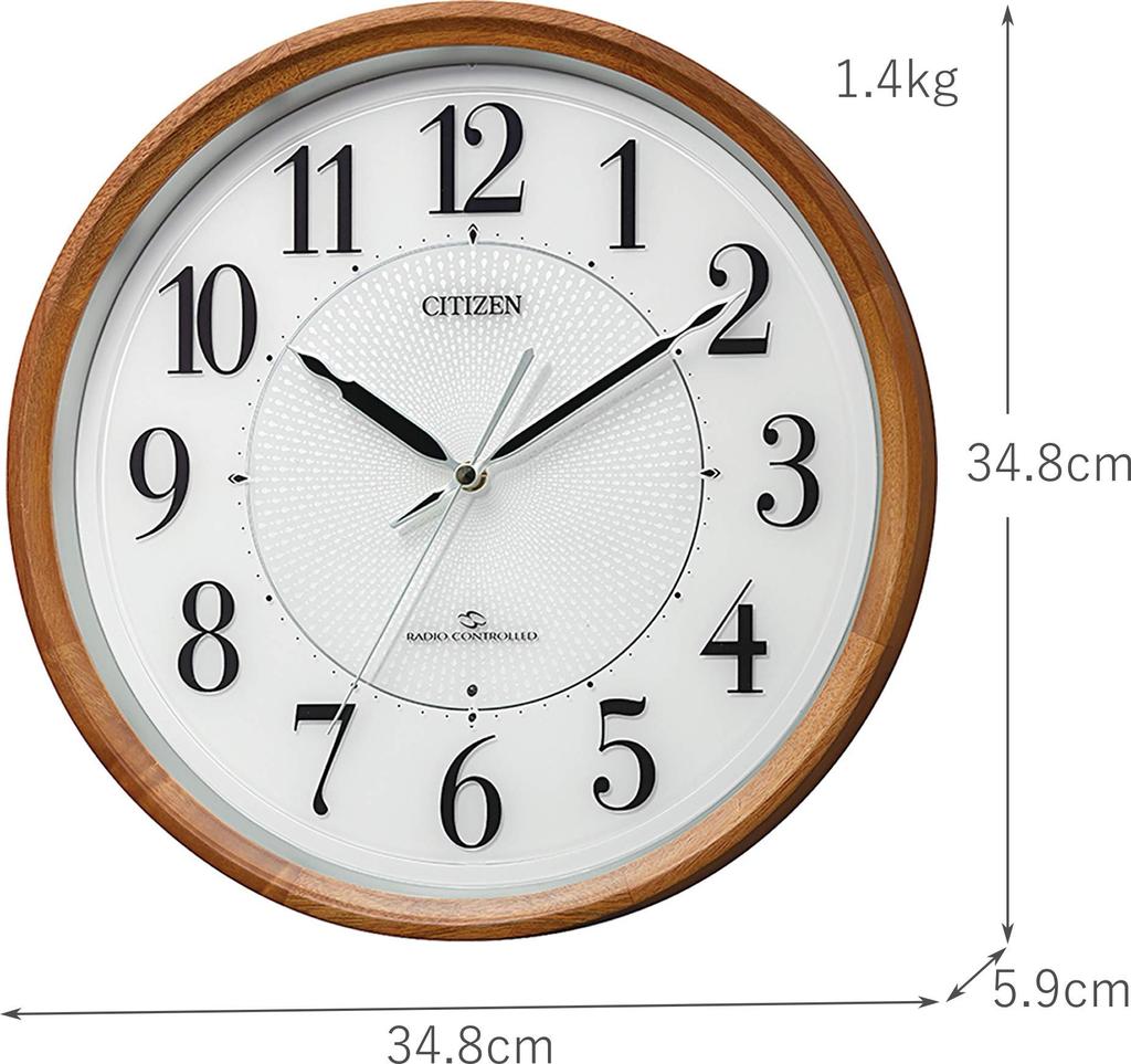 Настенные часы RHYTHM Citizen с широким диапазоном приема, радиочасы с бесшумным шагом, секундная стрелка, коричневые, 34,8x5,9 см, 4MY860-006