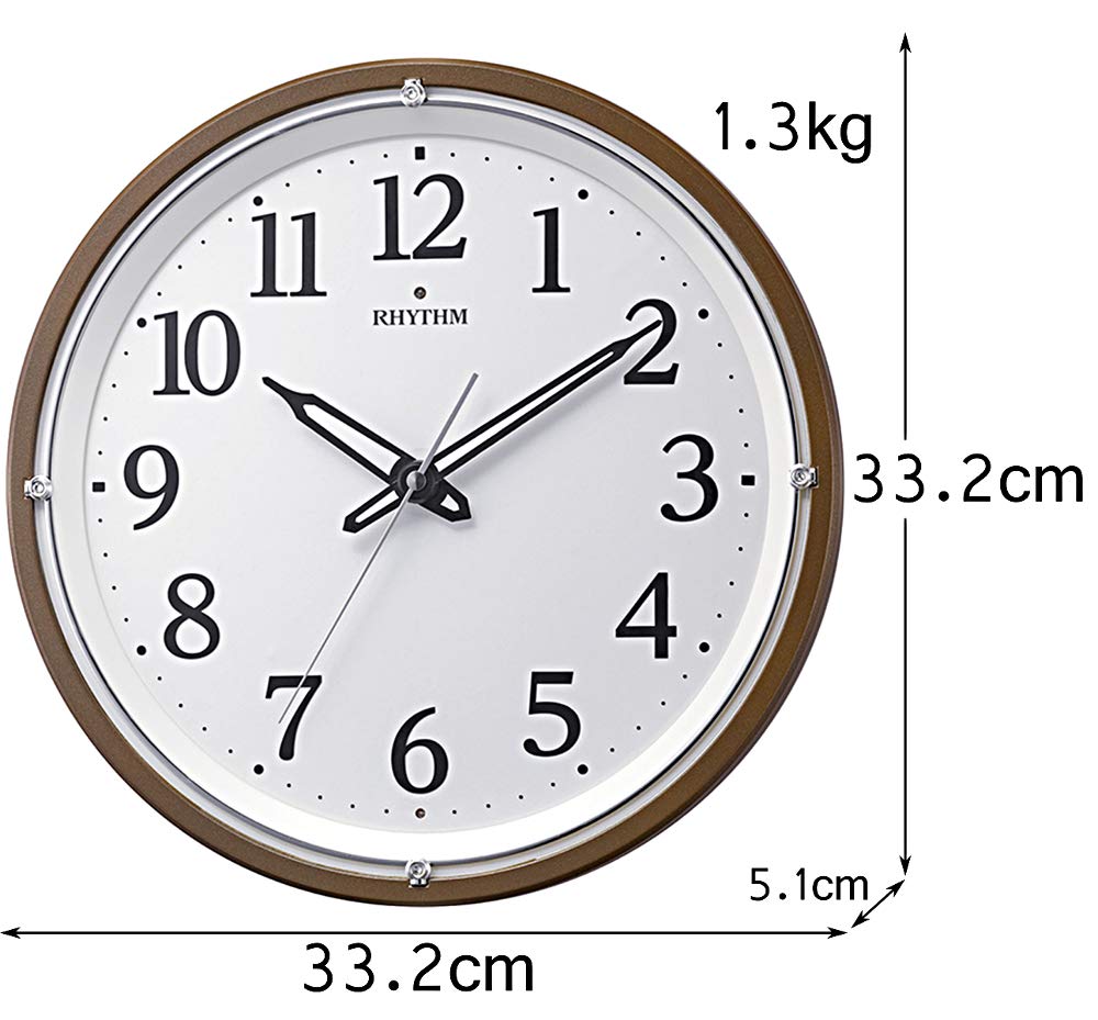 Настенные часы RHYTHM с радиоприемником, аналоговые, с непрерывной секундной стрелкой, темный свет, автоматическое затемнение, коричневый цвет 8MY532SR06 33,2x5,1 см