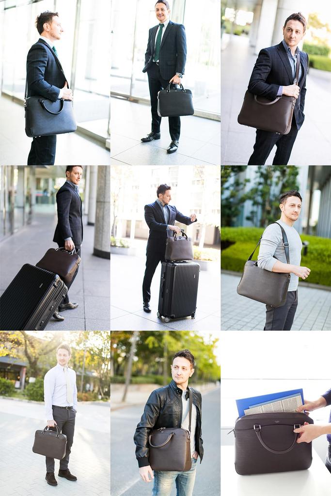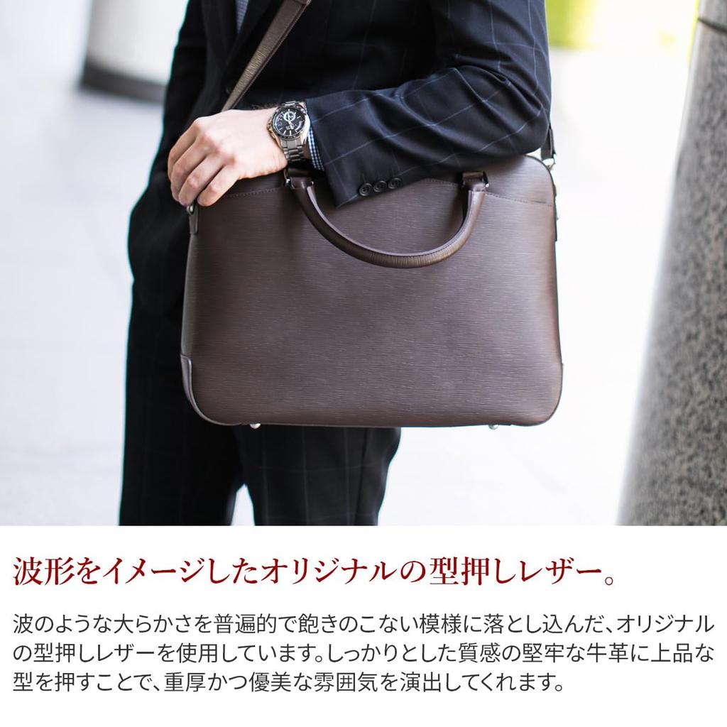 Pelle Morbida Briefcase Genuine Leather Capitano Embossed Leather Charcoal Gray PMO-CA201 Men's PM-CA201-CGY