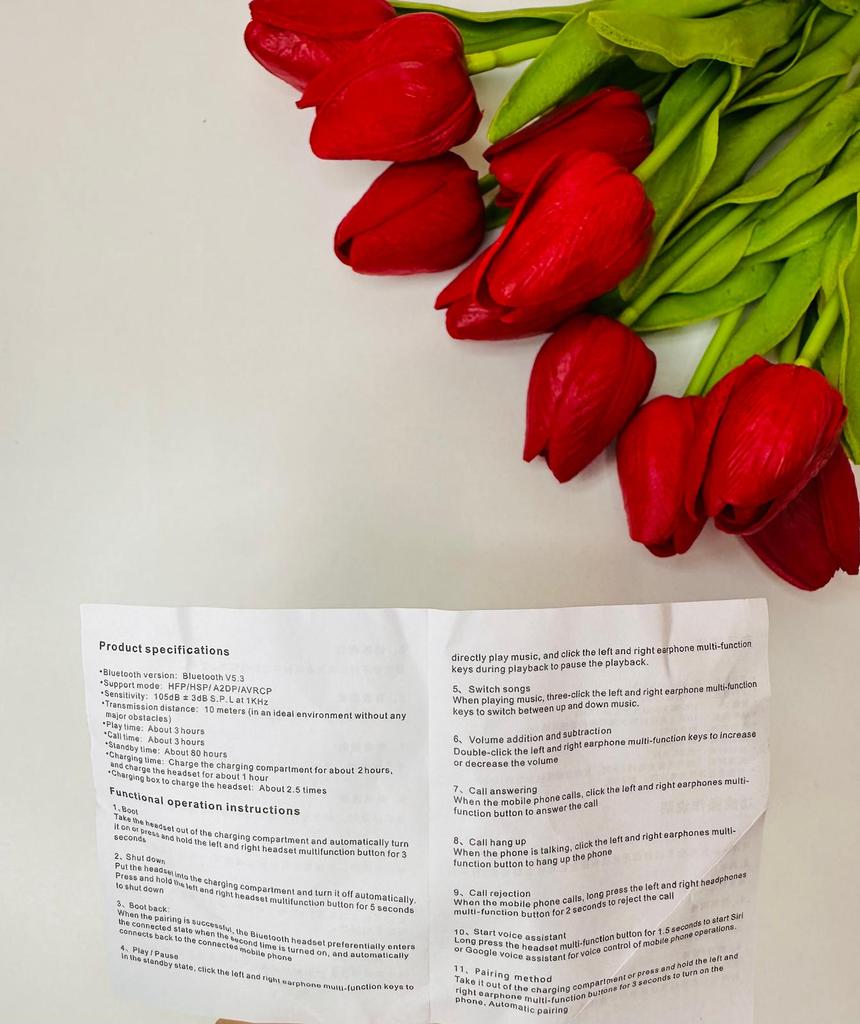 Новая Bluetooth-гарнитура TWS ✔️Наушники Bluetooth версия 5.3 . сенсорное управление. ✔️Наушники работают хорошо, слышимость отличная. ✔️В комплект идёт кабель USB. ✔️Для прослушивания музыки зарядки хватает на 2 часа. ✔️У продавца в наличии 5 цвета. ✈️Посылка шла меньше месяца до Молдовы, Кишинёв. ✔️Посылка была упаковано отлично. ✔️Без брака или повреждений. ✔️Качество хорошее. Однозначно рекомендую к покупке ❤️