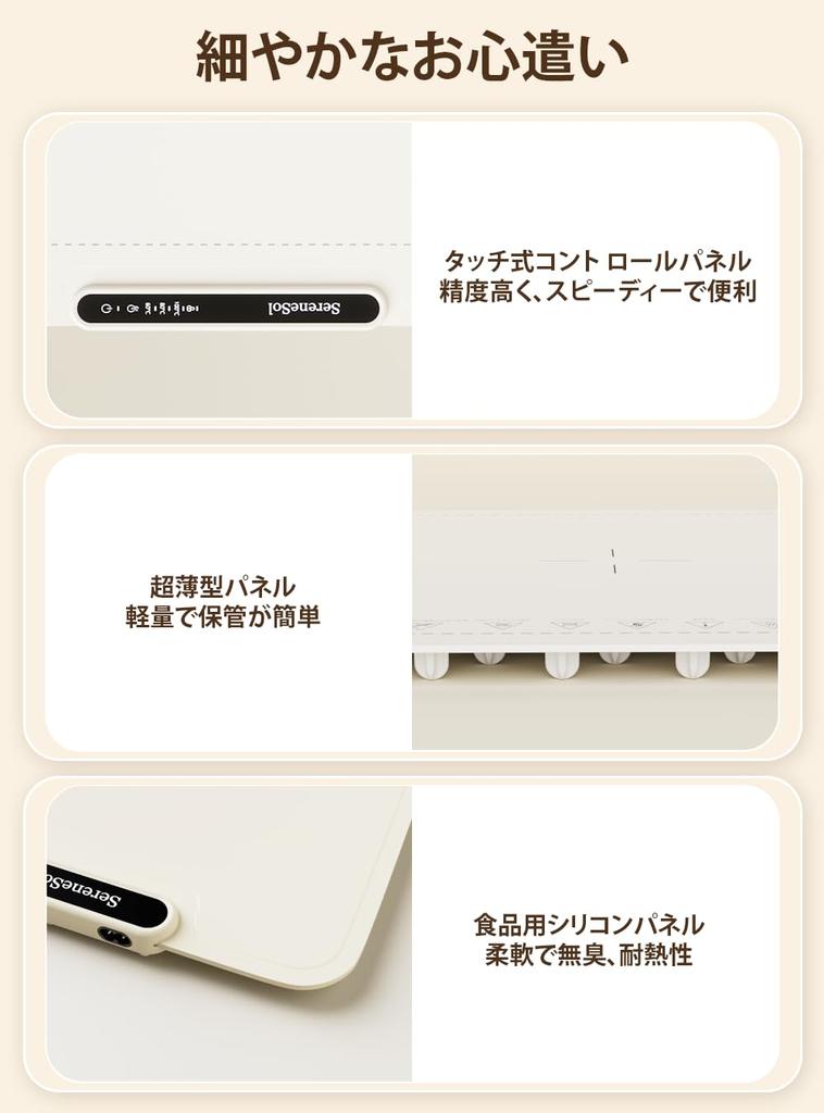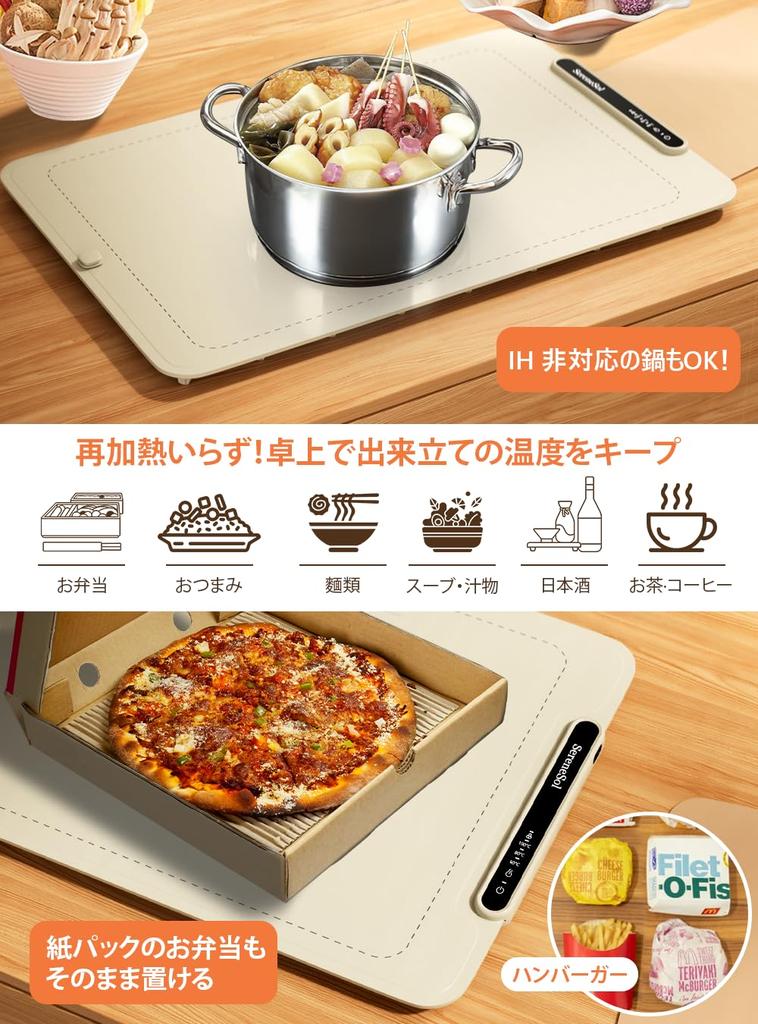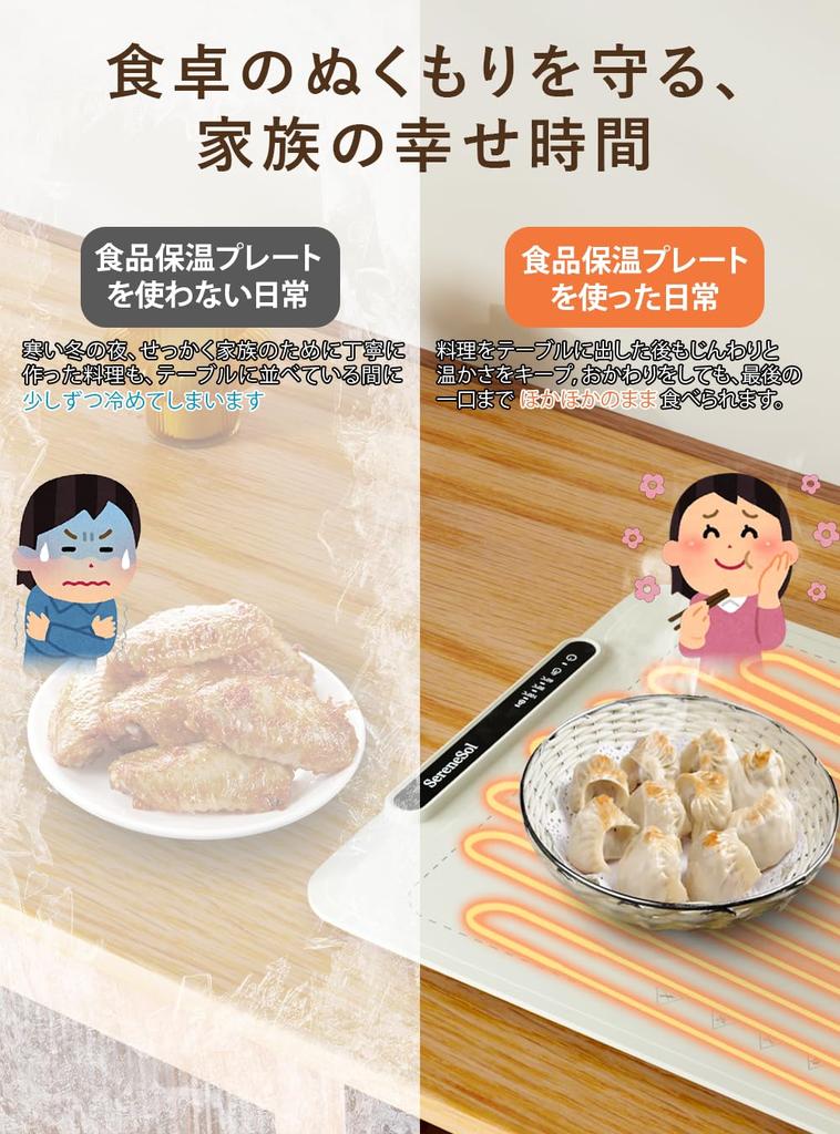 [Технология нагрева всей поверхности] Уникальная конструкция нагревательного провода быстро и равномерно передает тепло по всей поверхности. Таким образом, тепло распределяется равномерно, даже если вы размещаете посуду свободно, что позволяет вам пользоваться ею эффективно и комфортно.. Наслаждайтесь горячими блюдами по любому поводу: от повседневного обеденного стола до вечеринок.