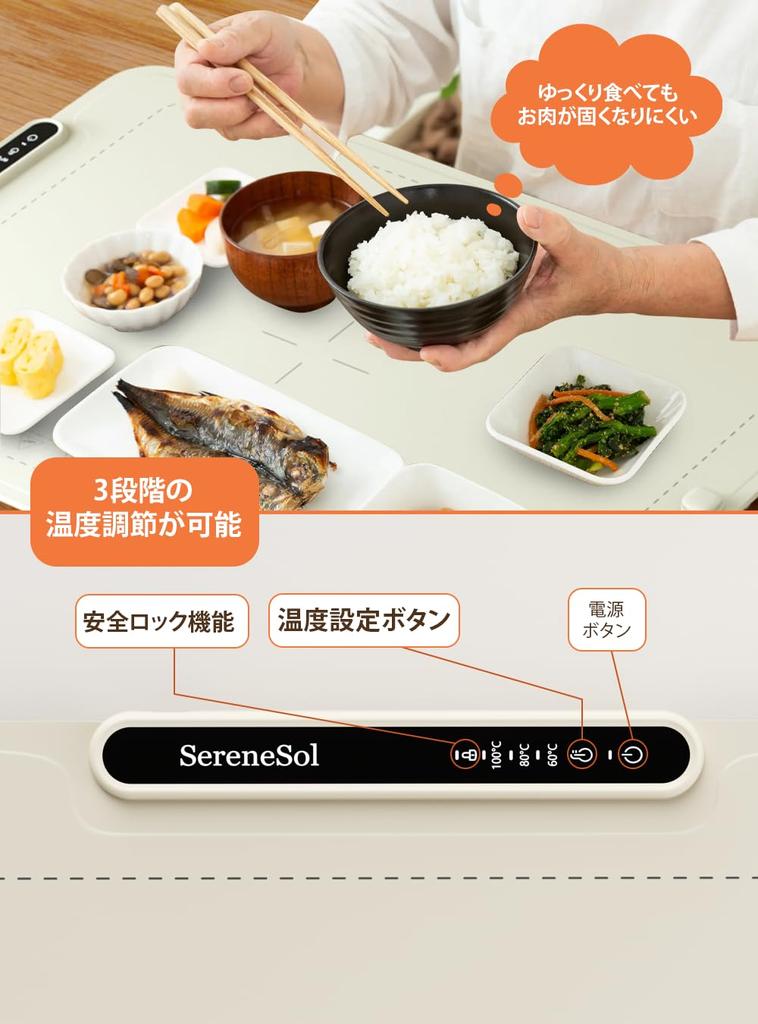 [3-уровневый контроль температуры] Возможен точный контроль температуры. От поддержания тепла до обогрева — вы можете легко установить оптимальную температуру по мере необходимости.. Оснащен 3-ступенчатым контролем температуры, чтобы поддерживать оптимальную температуру ваших блюд.. Не упуская момент и сохраняя еду горячей и вкусной, вы будете чувствовать себя еще более удовлетворенным своей едой.. Он имеет универсальный дизайн, который можно использовать в любых ситуациях: от домашней готовки до развлечений.