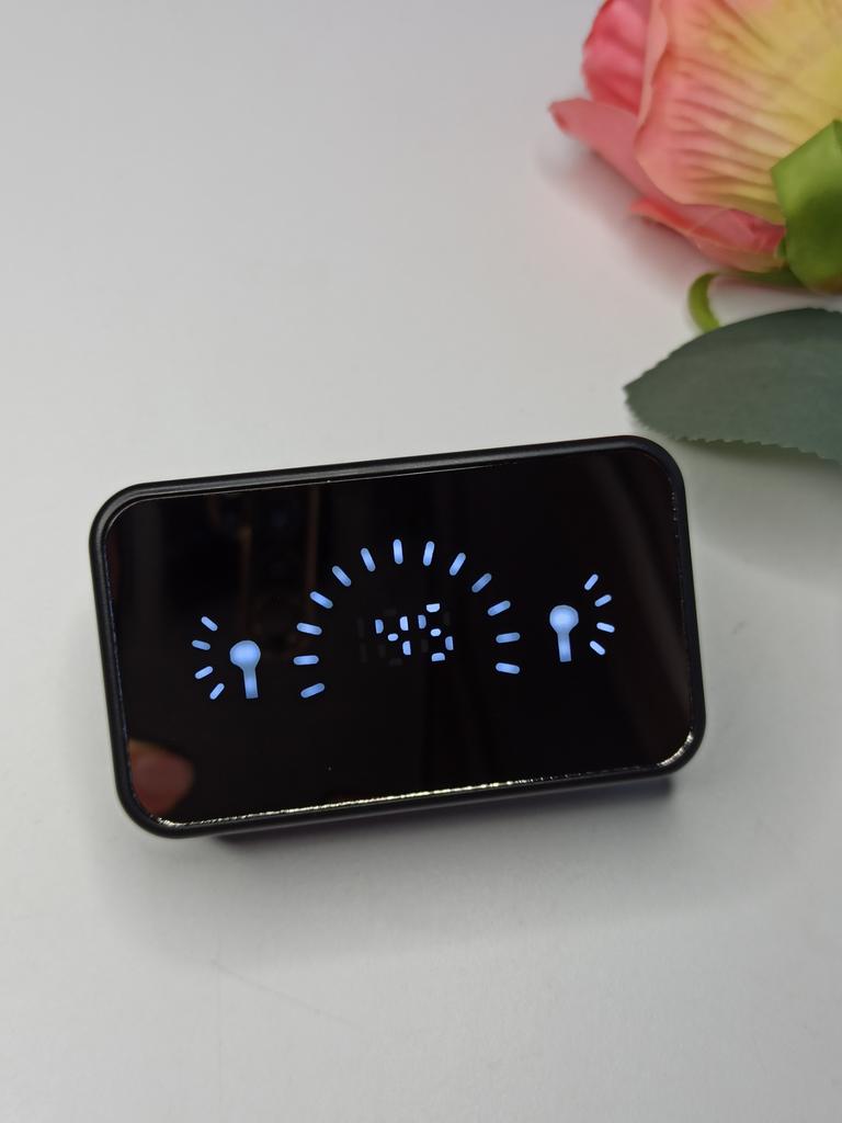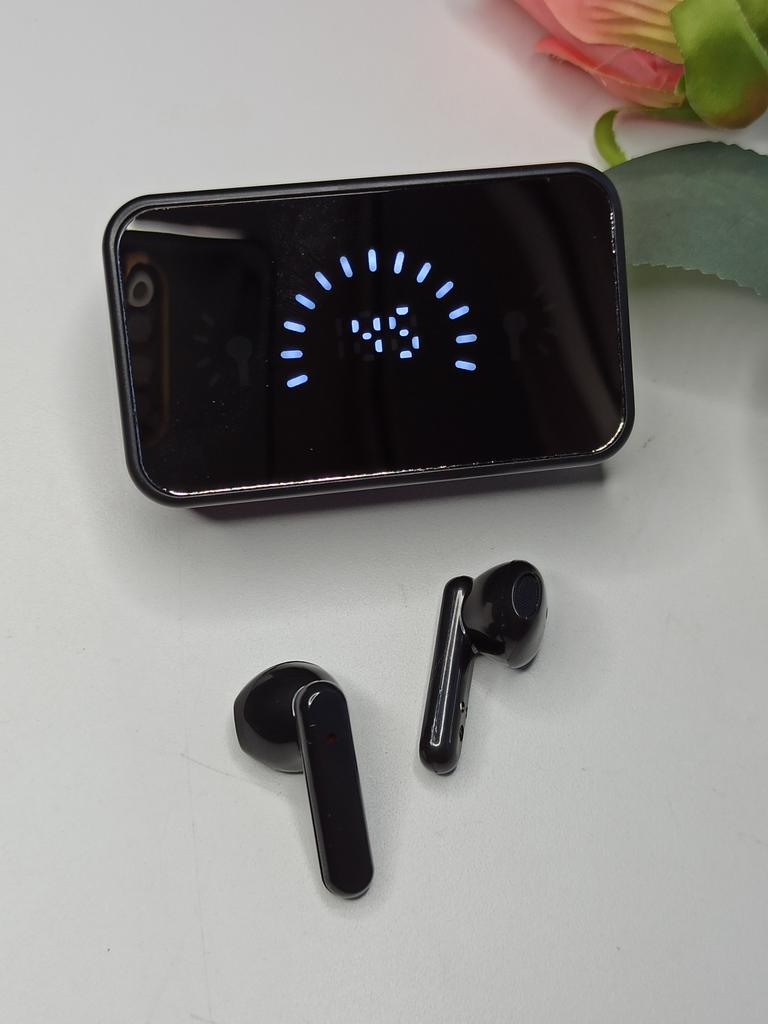 Bluetooth наушники с зеркальным цифровым дисплеем В комплектации: 🎶Наушники 🎶Кейс для зарядки 🎶USB кабель для зарядки кейса 🎶Инструкция Управление в наушниках сенсорное. С наружной стороны кейса есть дисплей который показывает уровень зарядки кейса и каждого наушника отдельно. Также этот дисплей может служить зеркальцем, очень удобно. Наушники проверила: с телефоном сопрягаются через Bluetooth без проблем. Звук отличный: чистый, мощный с хорошими басами. Также в наушниках есть микрофон благодаря которому можно принимать звонки и разговаривать не вынимая телефон из кармана. В ушах наушники держатся хорошо, не выпадают. У продавца наушники предоставлены на выбор в 2 цветах: белые и черные. Мне наушники понравились. Рекомендую.