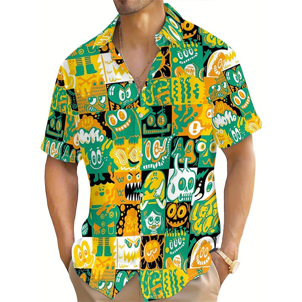 Повседневная клетчатая мужская рубашка с короткими рукавами и принтом смешных лиц из мультфильмов, летняя повседневная одежда для улицы с мужской рубашкой большого размера — купить товар онлайн с бесплатной доставкой по всему миру!