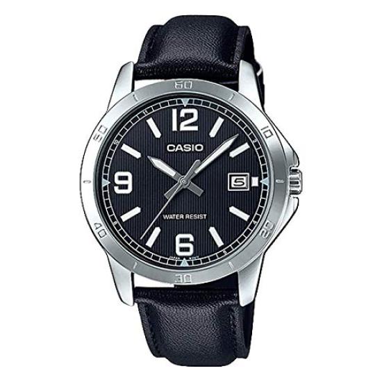 CASIO Casio Стандартные часы для детей, мальчиков, дешевые Casio Chipkashi Analog Date Silver Black Leather Leather Belt Overseas Model Men's MTP-V004L-1B
