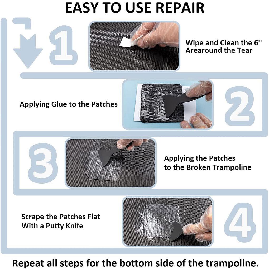 Упаковка из 2 нетканых заплаток для ремонта батутов, квадратных заплаток для обрезки батутов, палаток, лент, наклеек, аксессуаров