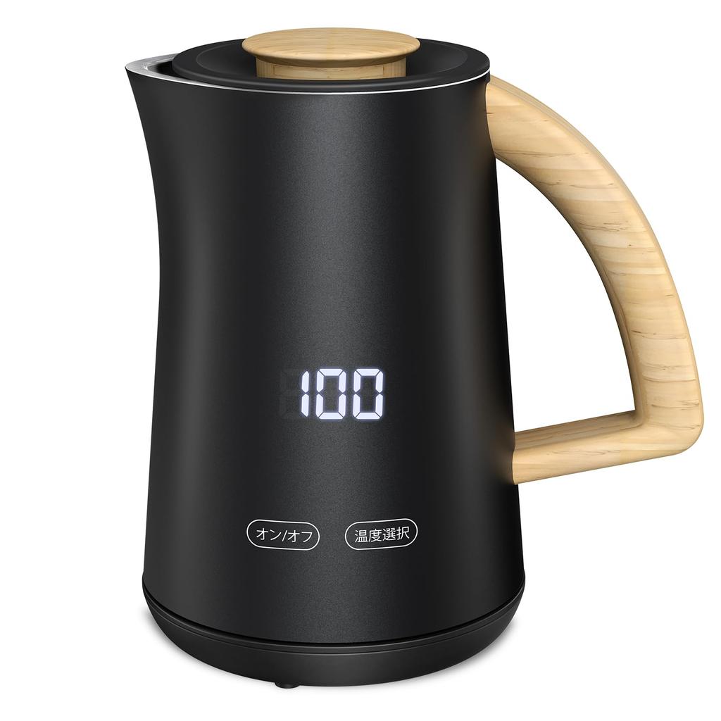 [Емкость 0,8 л/Простая и матовая текстура] Несмотря на компактность, емкость составляет 0,8 л, и в ней можно вскипятить около 5 чашек кофе. (150 мл на чашку) или около 3 кружек (1 стакан 250мл). Он также подходит для людей, живущих в одиночку или парами, или для небольших семей, которые в основном используют его для кофе и чая.. Внутри чайника имеется дисплей «MAX», который показывает полный объем воды, что не позволяет вам налить слишком много воды.. Простой дизайн без лишних деталей гармонично впишется в ваш интерьер, а сочетание черного цвета и текстуры дерева придаст ему более изысканный вид по сравнению с монохромными интерьерами.