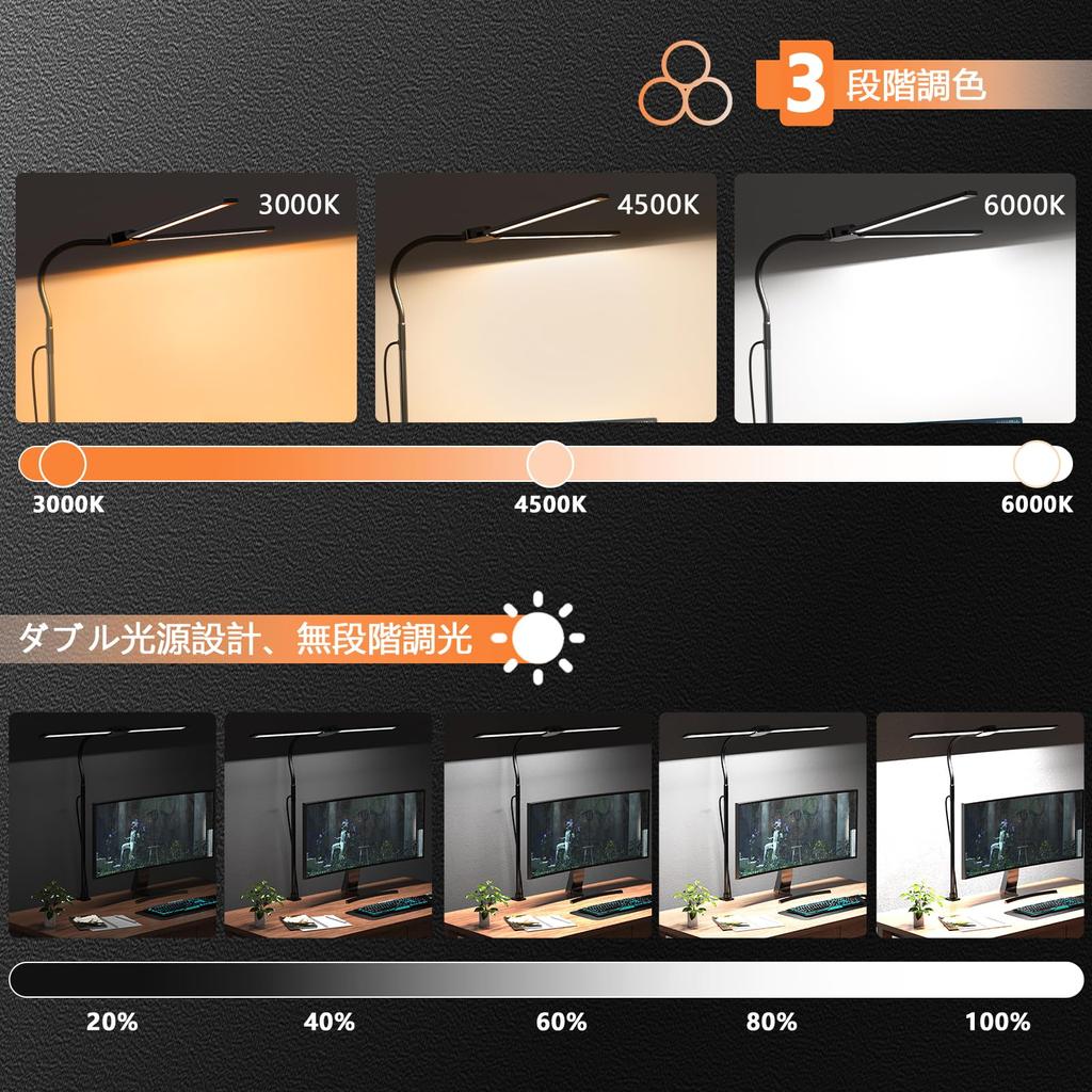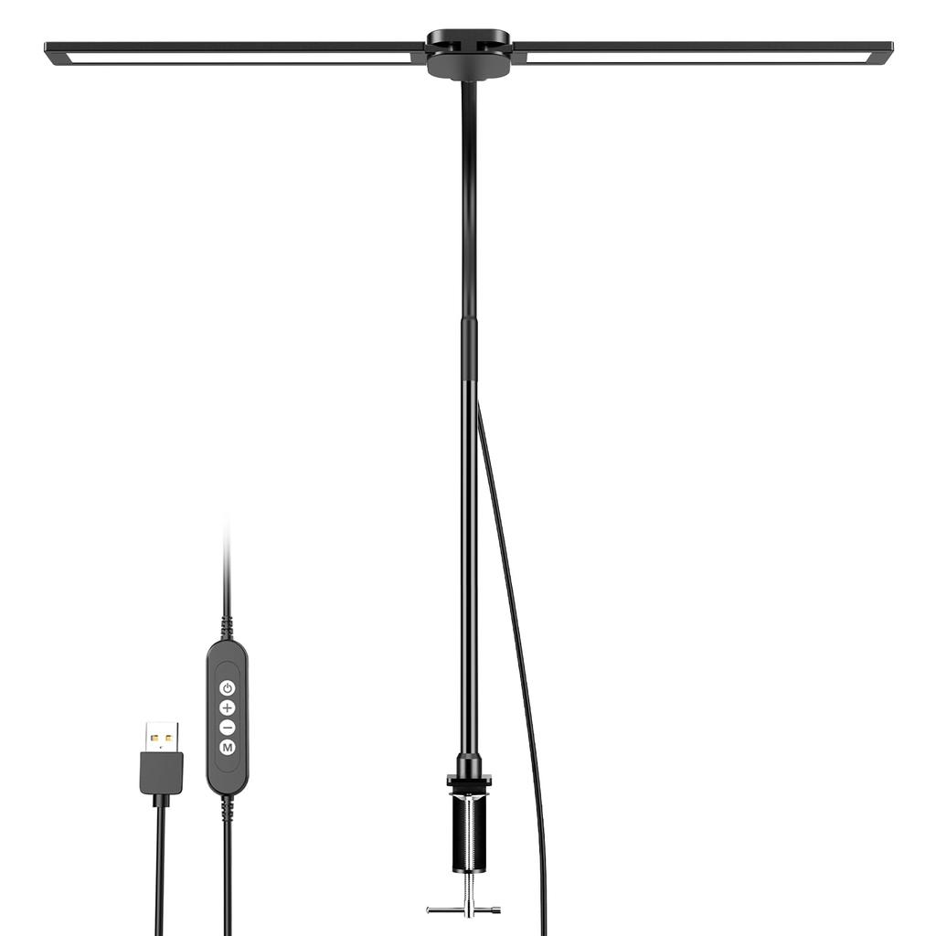 Настольная лампа, светодиодная двойная головка, настольная лампа, зажимного типа, высокая яркость 13 Вт, двухточечный светильник, 3 цветовых температуры, плавная регулировка яркости, настольная лампа, поворот на 360°, зажимной светильник, простота в эксплуатации, для столов, детей, рабочее освещение, настольные светильники, светильники для спальни, лампы для чтения, приятные для глаз