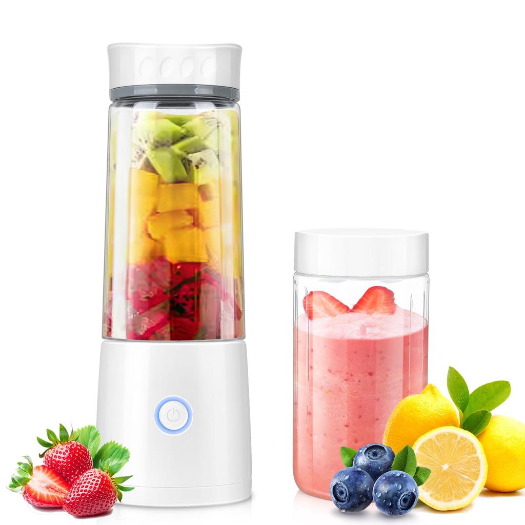 🍊 [Простота в эксплуатации, удобство переноски, большая емкость бутылки] Мини-соковыжималка может работать непрерывно всего одним нажатием кнопки.. Также имеется функция самоочистки, которая позволяет легко удалить любые остатки в слепых зонах лезвий, добавив воды и включив соковыжималку.. Беспроводная конструкция делает его компактным и легким, что позволяет удобно брать его с собой в дорогу. В комплект также входят две бутылки большой вместимости, которые можно легко мыть и заменять в любое время.