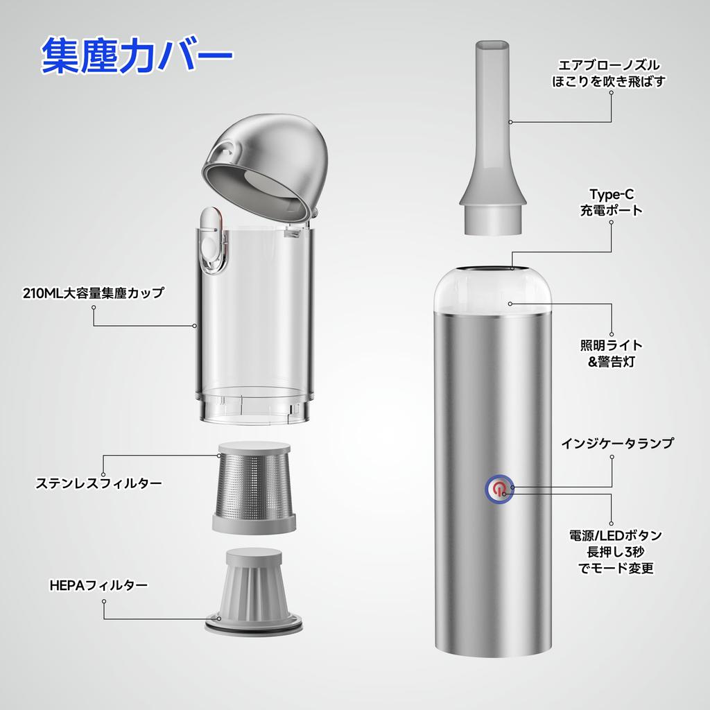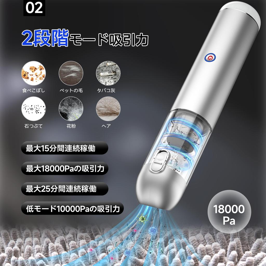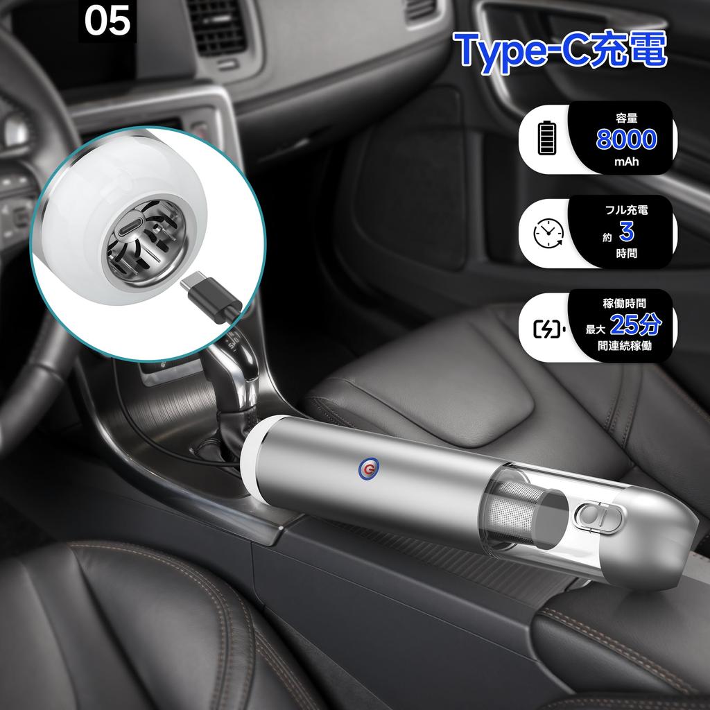 [Длительное использование и с подсветкой] Беспроводной автомобильный пылесос оснащен тремя встроенными литиевыми аккумуляторами емкостью 2650 мАч и может работать непрерывно до 25 минут после полной зарядки.. Благодаря входящему в комплект зарядному кабелю USB-C вы можете заряжать его в любом месте автомобиля или дома, используя разъем USB, и полностью зарядить устройство всего за 3 часа.. В комплекте идет специальная подсветка: если во время уборки вы обнаружили темный угол, включите специальную подсветку и осветите грязное место, чтобы было легче найти место, где скопилась пыль, и легко его очистить.