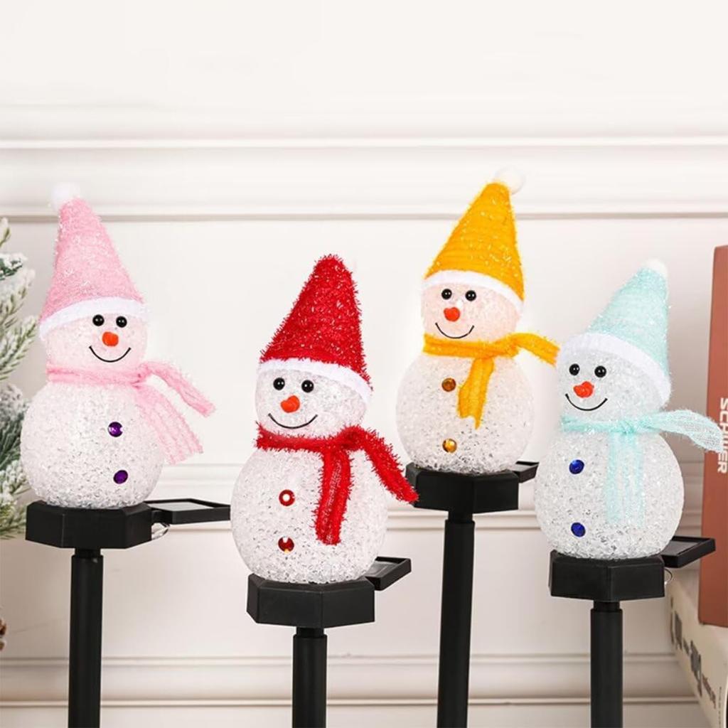 [Праздничное веселье] Украсьте свой дом солнечными фонариками в форме снеговиков, которые автоматически загораются ночью. Встроенная литиевая батарея и солнечная панель делают его очень энергоэффективным.. Простая установка делает его идеальным дополнением к праздничному оформлению.