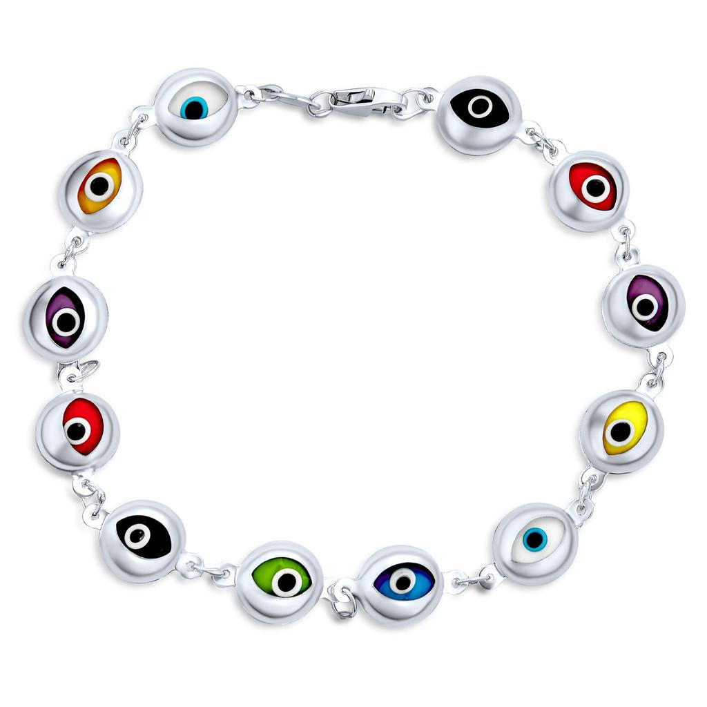 Игривая интерпретация духовных украшений и защиты от невезения, этот красивый и легкий браслет Design Link сглаз отличается множеством разноцветных радиальных радужных глаз в ярких основных цветах.. Это дает вам ощущение тайны Востока. На протяжении веков древние культуры обращались к украшениям от сглаза, чтобы отвести неудачу и привлечь хорошую карму.. Этот аксессуар также отлично подойдет в качестве подарка.