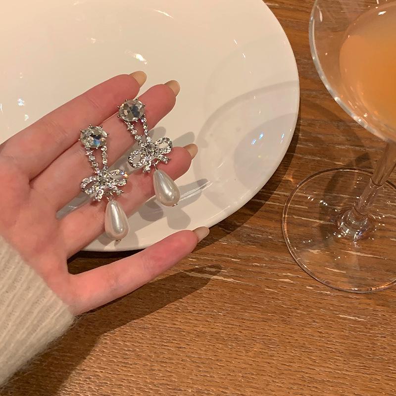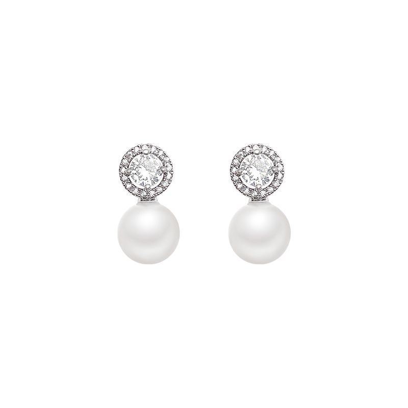 Изысканные серьги с жемчугом из серебра 925 пробы с инкрустацией цирконием для женщин