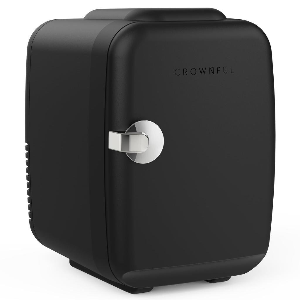 [Идеальная емкость 4 л] Маленький холодильник CROWNFUL имеет компактную конструкцию, но при этом не идет в ущерб вместимости.. Можно хранить до 6 банок объемом 330 мл и 350 мл, а также до 4 пивных банок объемом 500 мл.. Кроме того, он оснащен регулируемыми разделителями, что позволяет легко хранить небольшие предметы, такие как средства по уходу за кожей и лекарства.