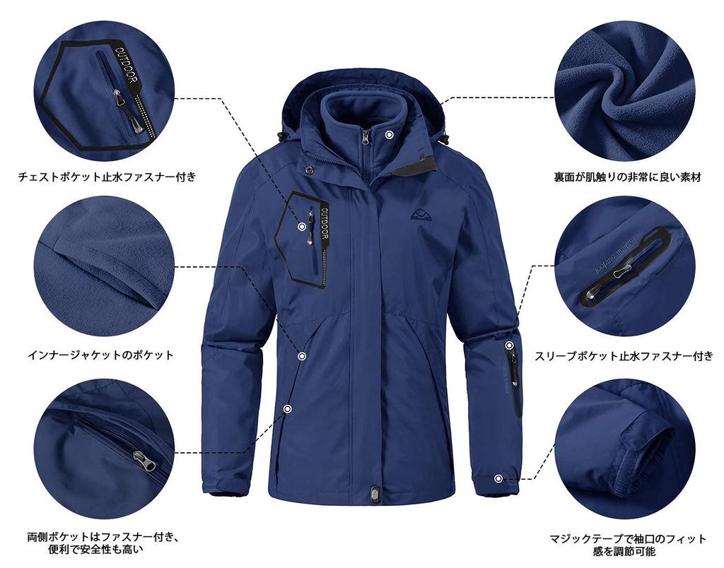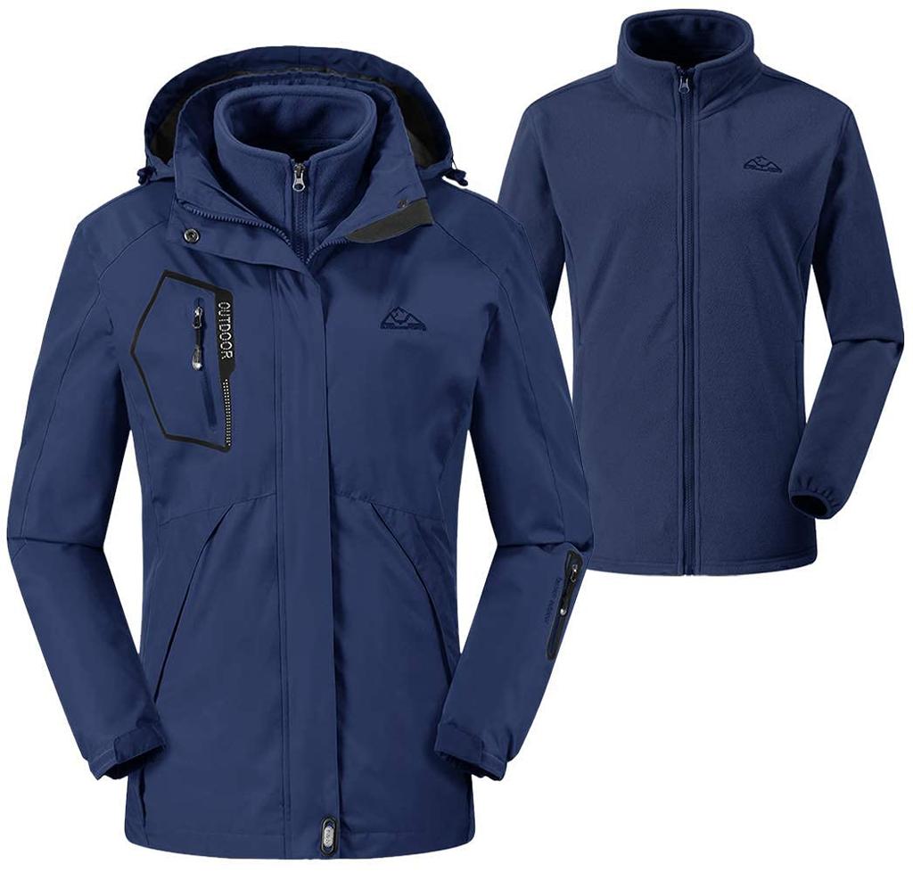 Флисовая куртка для горного восхождения 3 в 1 для горного восхождения в холодную погоду, темно-синяя, размер L [Gopune] Женская куртка, подкладка, парка, ветровка, верхняя одежда, пальто,