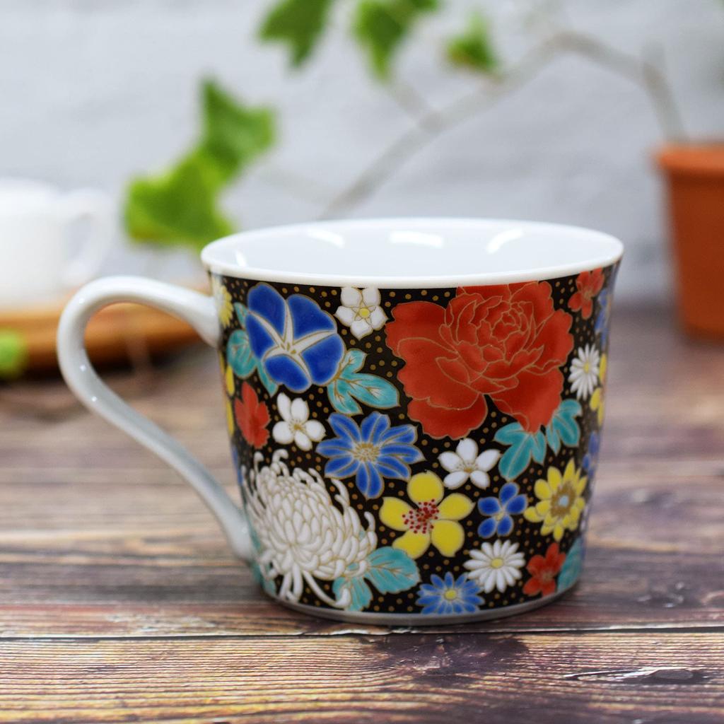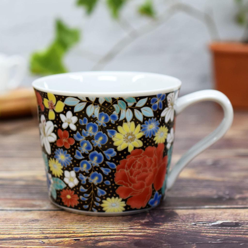 Кружка Waza no Kura Kutani Ware с цветочным наполнением, черная керамика, элитная брендовая посуда, сделанная в Японии, подарок на 60-летие