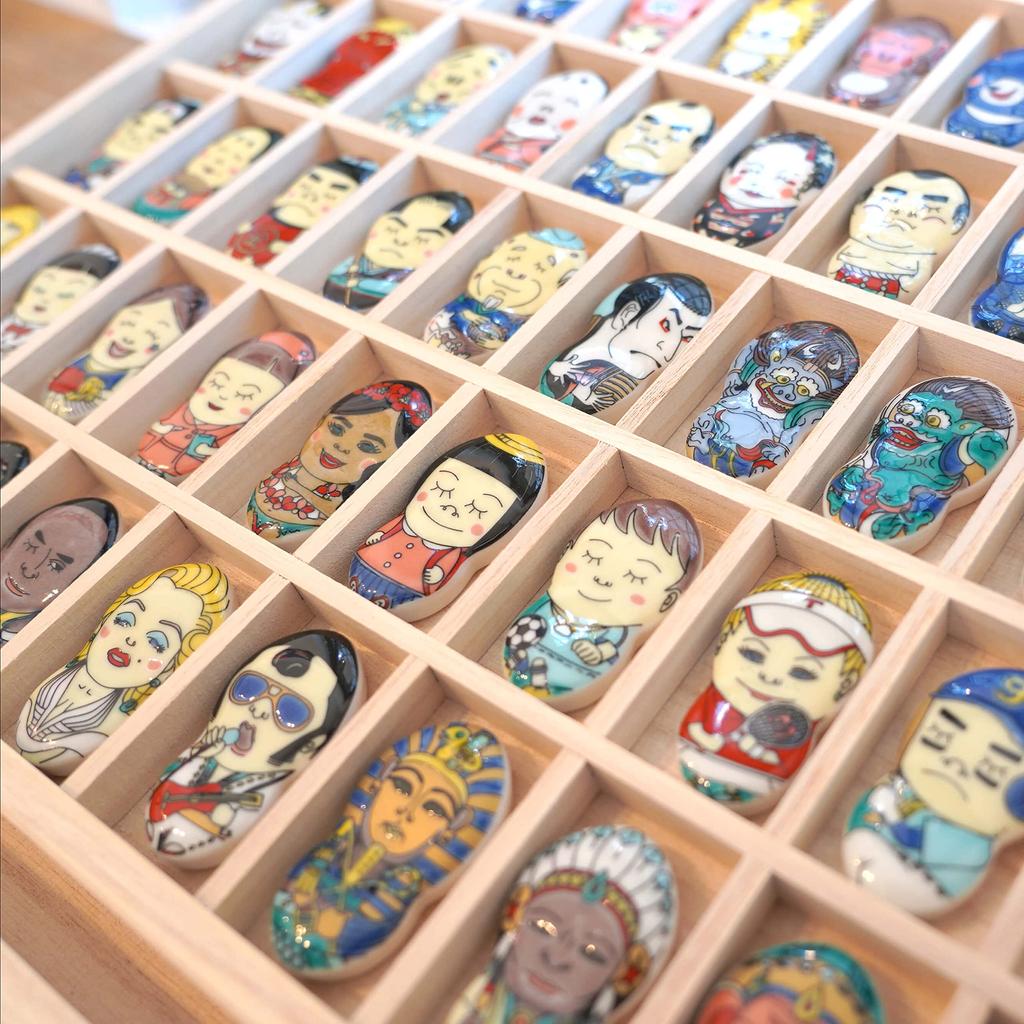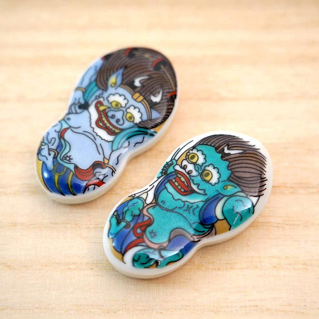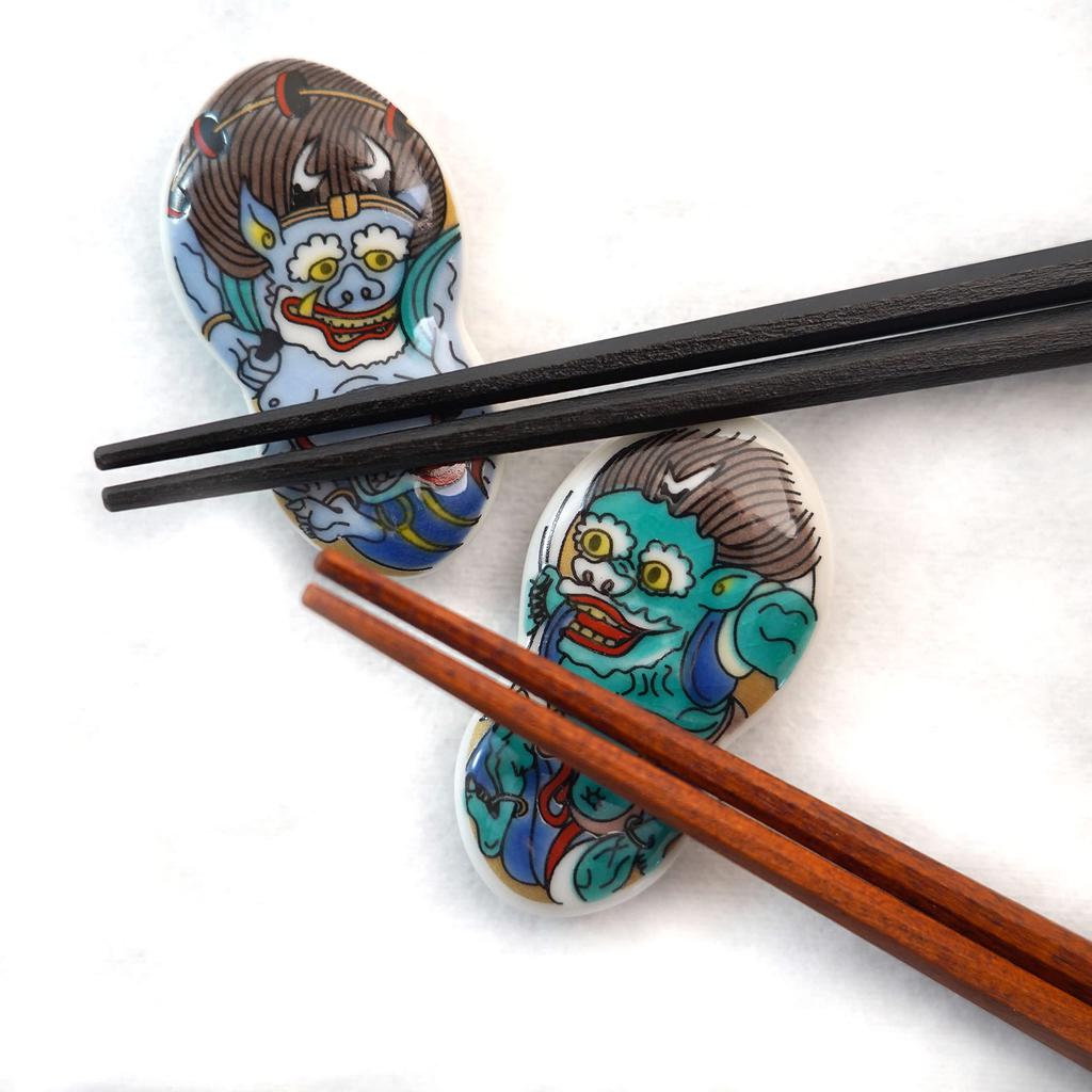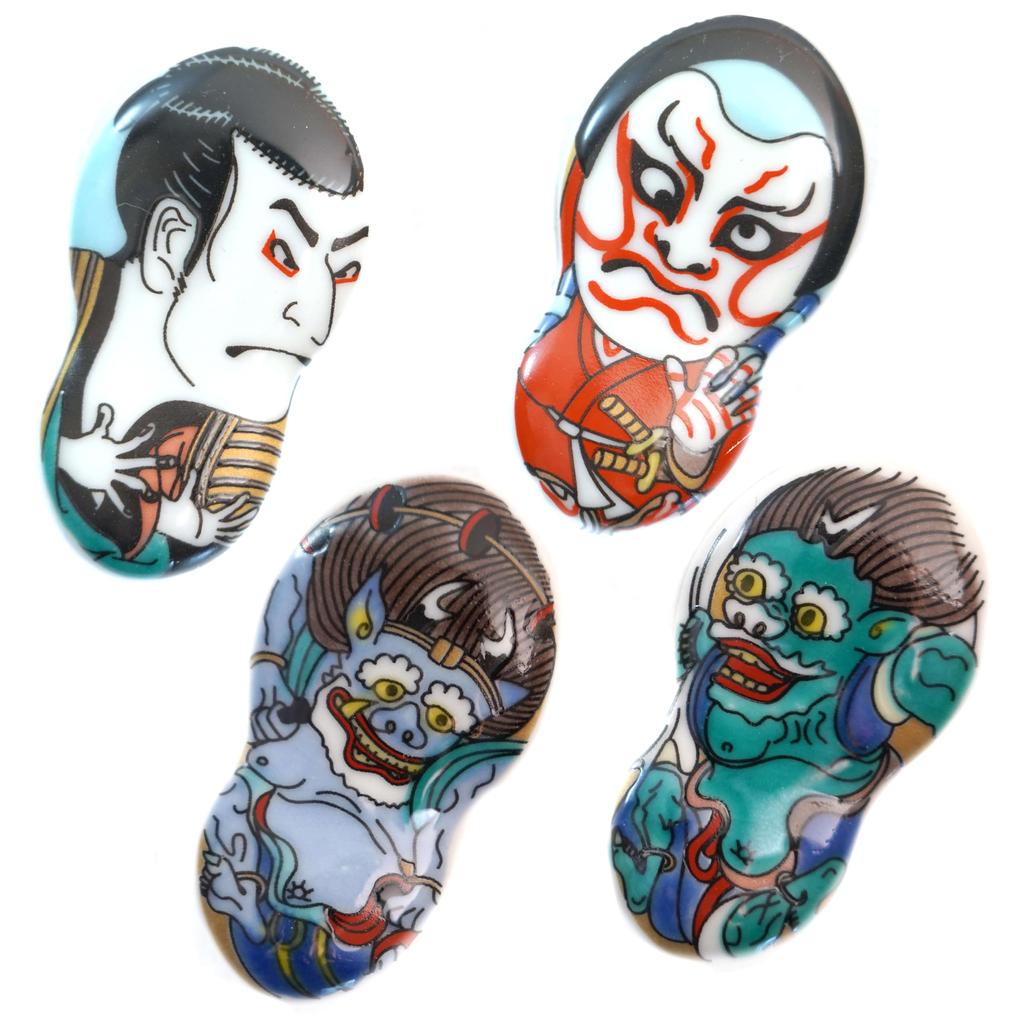 Подставка для палочек для еды Tubbies Kutani Yaki Japan Набор из 4 шт. Fujin Raijin Kabuki Oniji Otani /