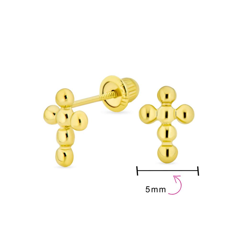 Маленькие минималистичные религиозные христианские мини-серьги-гвоздики с шариками и крестом для женщин-подростков из настоящего желтого золота 14 карат с защитным винтом сзади