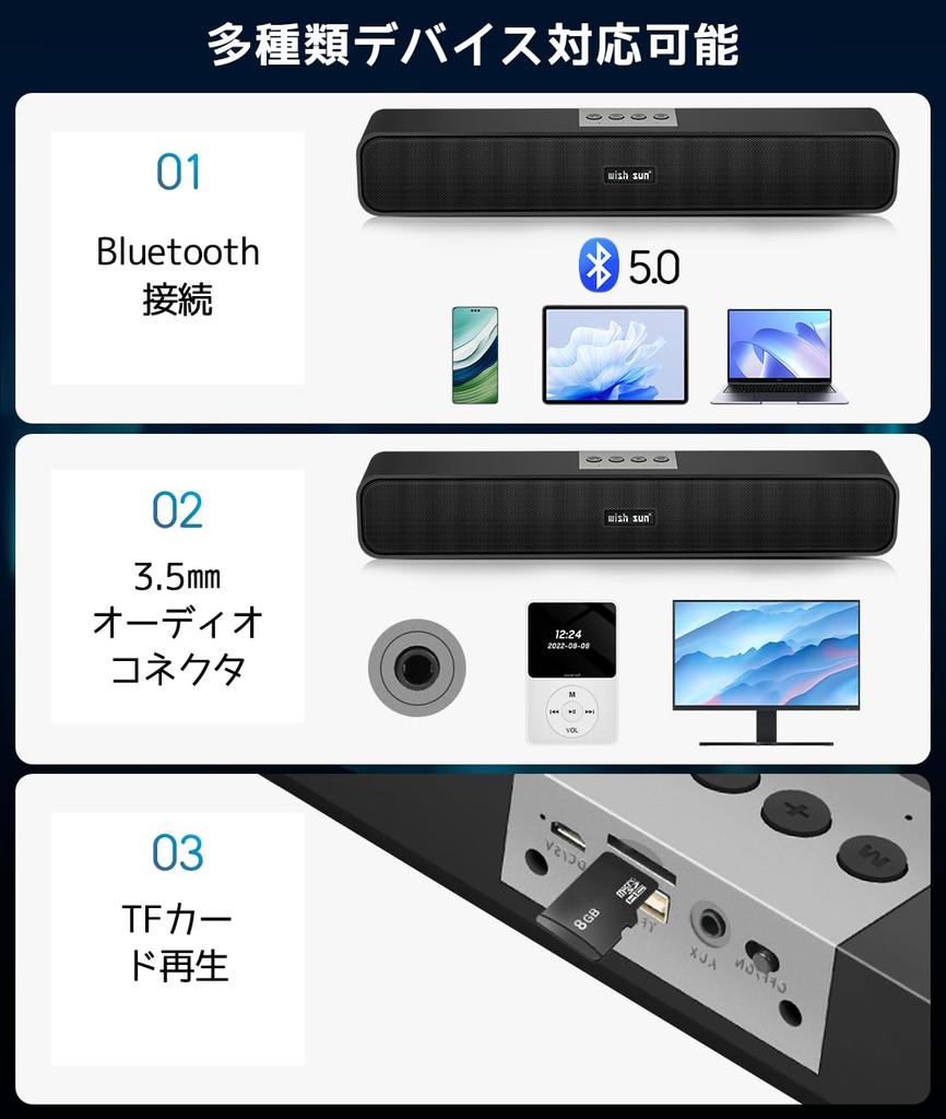 [Динамик для ПК★Простота в эксплуатации] Наслаждайтесь музыкой еще больше благодаря простоте эксплуатации. Наши компьютерные колонки имеют USB-питание, поэтому их можно также питать от USB-порта вашего компьютера или монитора.. На верхней части основного блока имеется отдельная поворотная кнопка регулировки громкости, и вы можете точно отрегулировать громкость, просто поворачивая ее.. Во время использования голосовые сообщения на японском языке будут информировать вас о состоянии сопряжения, состоянии режима подключения и т. д.. Удобен в использовании как для пожилых людей, так и для детей.