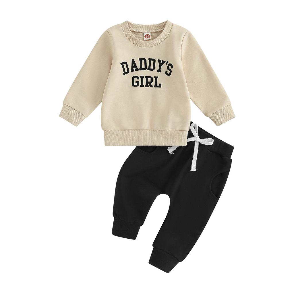 Комплект из двух предметов для маленьких девочек, толстовка с длинными рукавами и круглым вырезом с буквенным принтом и спортивные штаны с эластичной резинкой на талии, осенняя одежда