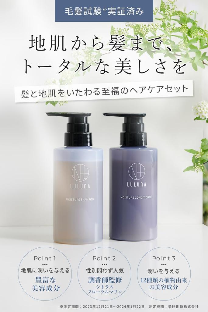 [Уход за волосами, который заботится о коже и волосах] Для эластичной и мягкой кожи, гладких и блестящих волос, которые остаются собранными до самых кончиков. Шампунь и кондиционер Luluna, созданные с учетом ухода за кожей, тщательно очищают кожу головы и волосы, не перегружая их, а также содержат увлажняющие компоненты, которые удерживают их на месте, что делает их идеальными для использования по пути домой из салона красоты.. Его могут использовать не только женщины, но и мужчины.