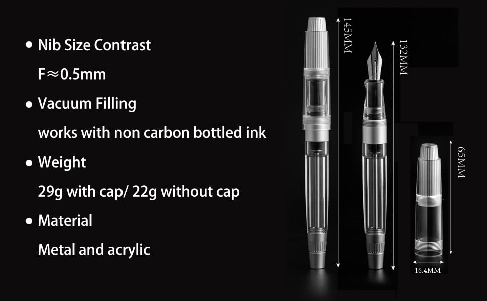 Natami Перьевая ручка с тонким пером, прозрачный корпус, чернила, платиновая каллиграфия, подарочный футляр (Серебряный)