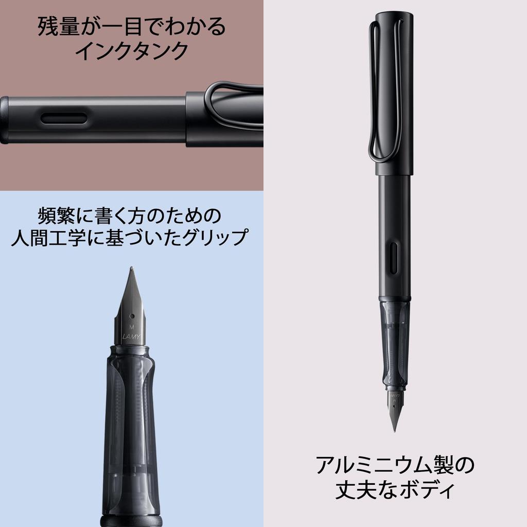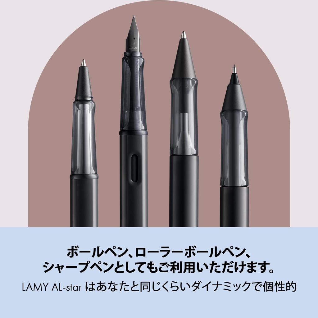 LAMY Black Fountain Pen Ergonomic grip and black steel nib Size M Lightweight aluminum body LAMY T 10 Blue cartridge included AL-star - - - -