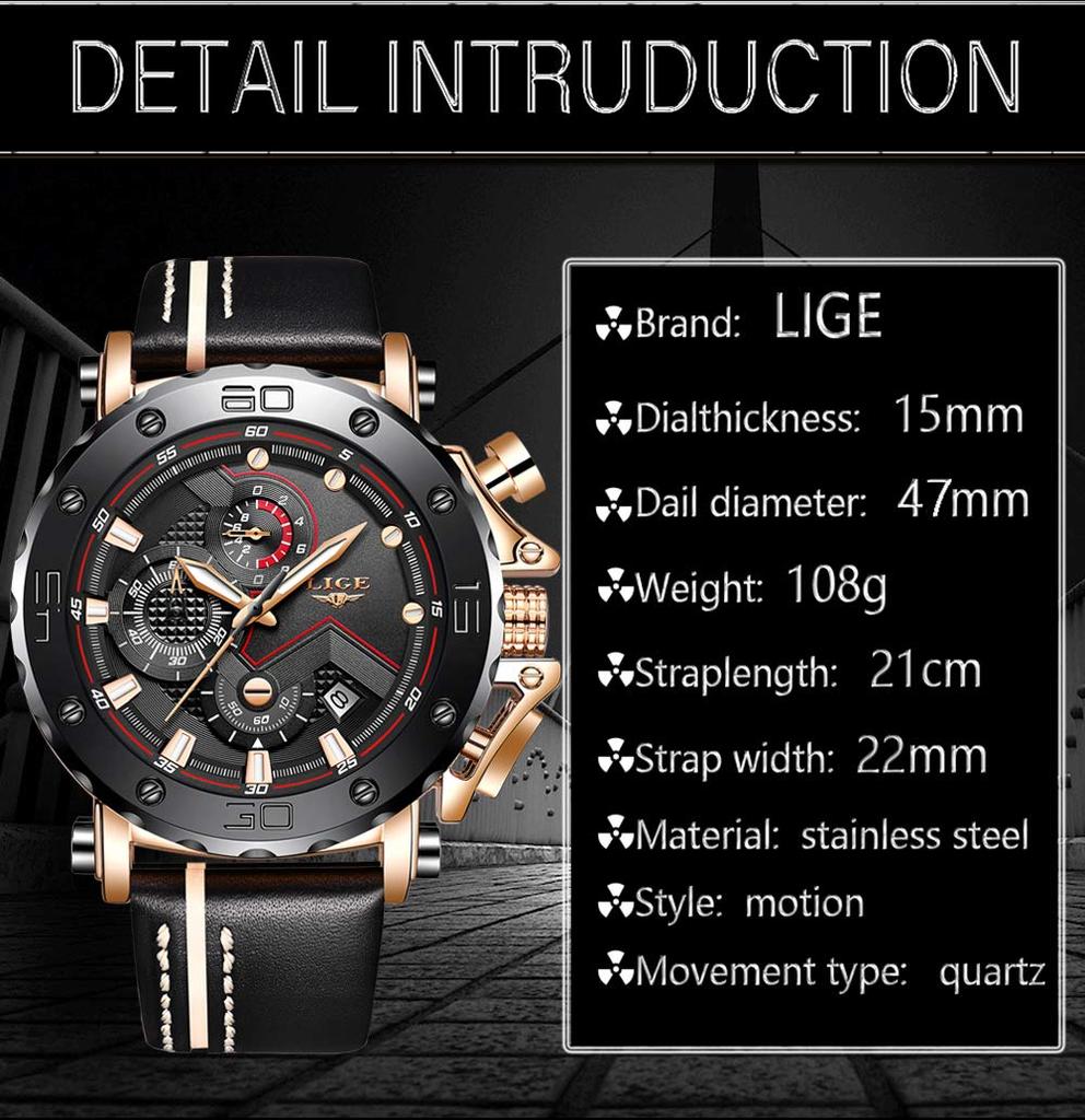 LIGE Watch Кожаный ремешок Черный Стандартные часы LG9899A Мужские Мужские