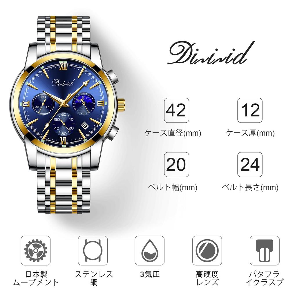 Часы DIZIZID кварцевые часы с хронографом популярные деловые часы стильные многофункциональные часы из нержавеющей стали водонепроницаемые 3 АТМ дата светящиеся