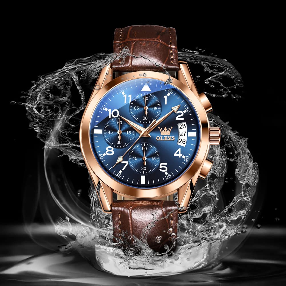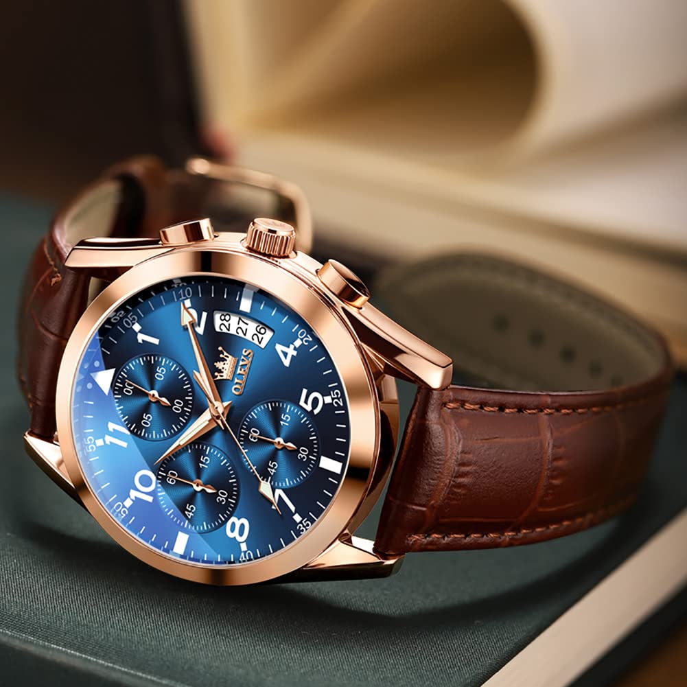 Часы OLEVS Business Популярные часы Кожаные кварцевые часы с датой Светящиеся водонепроницаемые часы для мужчин Модные аналоговые часы Стильные синие наручные часы с циферблатом Cool