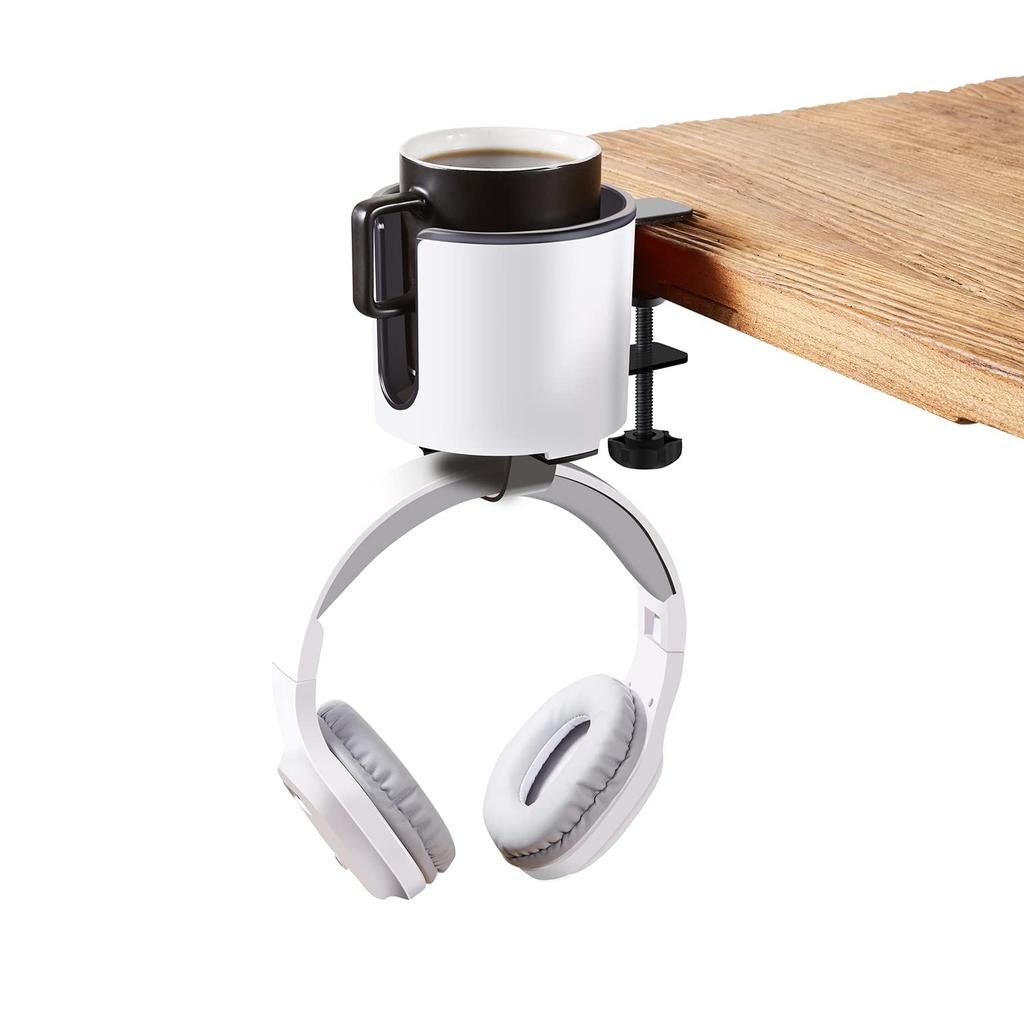 Функция 2-в-1: Универсальная конструкция, можно установить в любом месте (толщиной 2 дюйма или меньше) и вы можете закрепить его на поверхности стола/чашке/подставке для наушников, чтобы уменьшить беспорядок - это ваш лучший выбор. Фиксированный верхний держатель может удерживать чашки или другие емкости для напитков, а нижний держатель может удерживать все наушники.