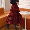 Длинная юбка в клетку на весну и осень, женская юбка-зонтик с высокой талией, юбка-трапеция средней длины в клетку в стиле ретро