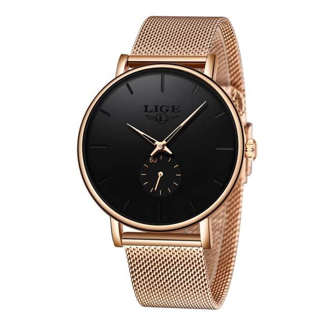 LIGE Часы мужские (Розовое золото/Простой) — купить товар онлайн с бесплатной доставкой до всему миру!