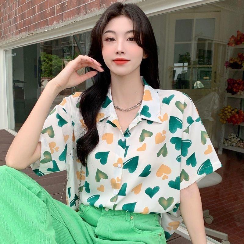 Женская модная повседневная свободная рубашка с коротким рукавом, летняя футболка с принтом, рубашка с коротким рукавом