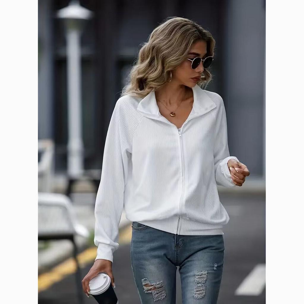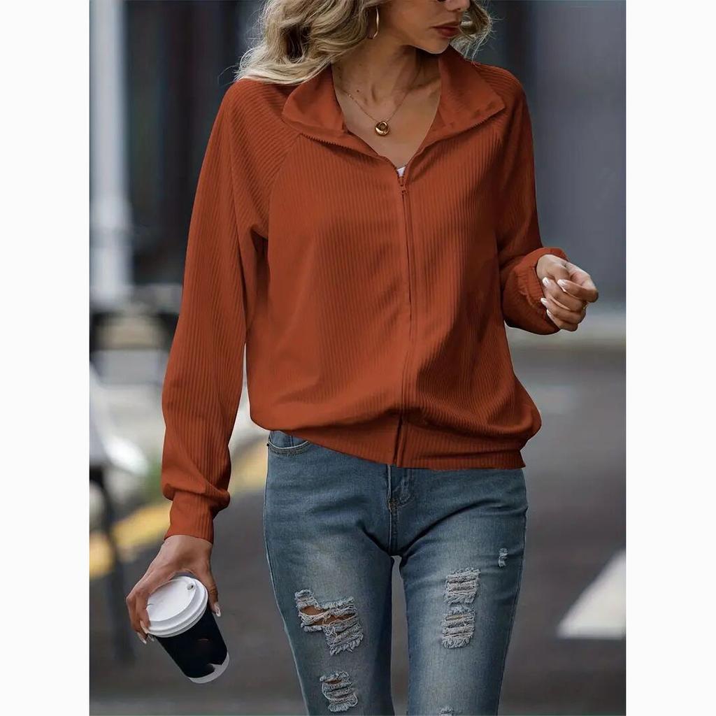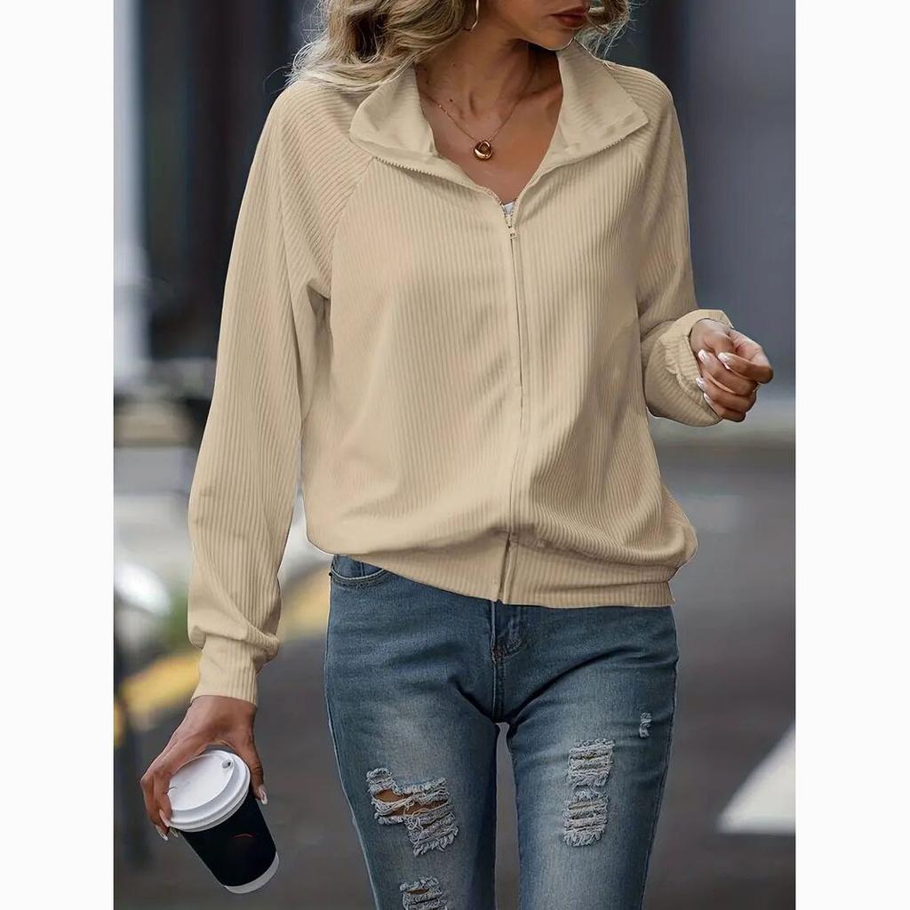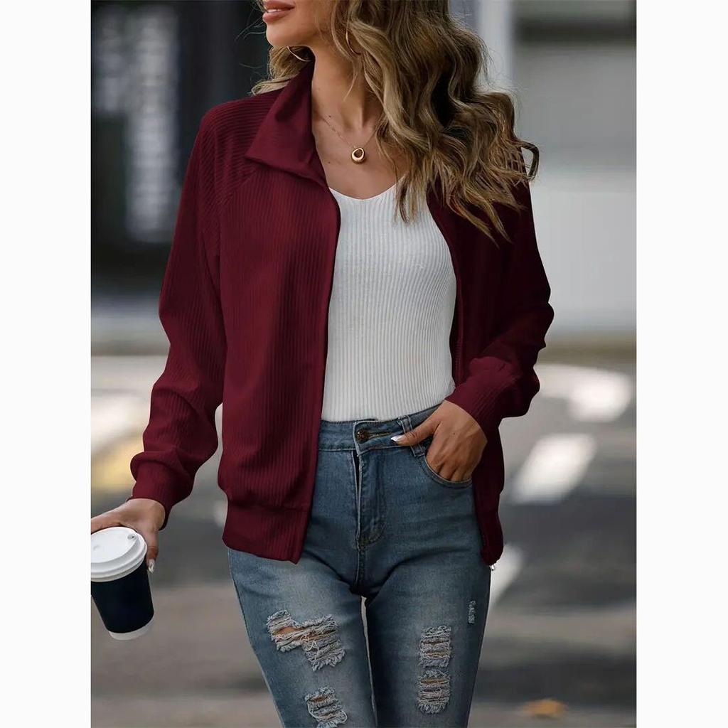 Весенняя женская повседневная однотонная свободная трикотажная куртка с длинным рукавом