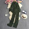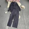 Женская свободная плиссированная однотонная рубашка с длинными рукавами, комплект из двух предметов, прямые широкие брюки с высокой талией и драпировкой