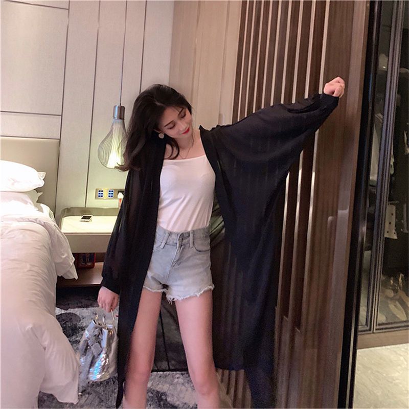 Однотонные кардиганы для женщин, тонкая летняя одежда, женская, солнцезащитная, простая, с длинным рукавом, корейский стиль, свободная, удобная, дышащая