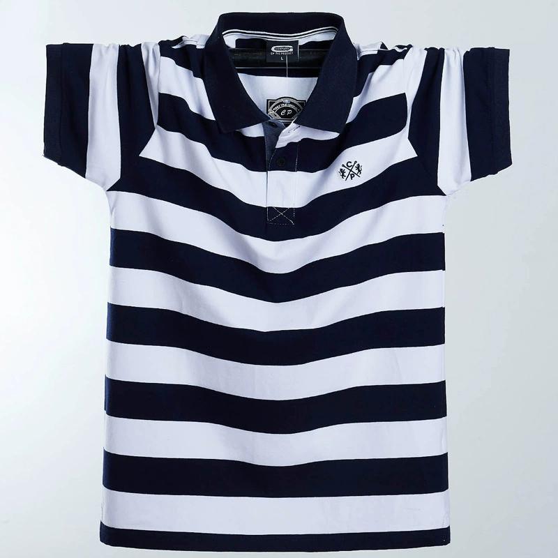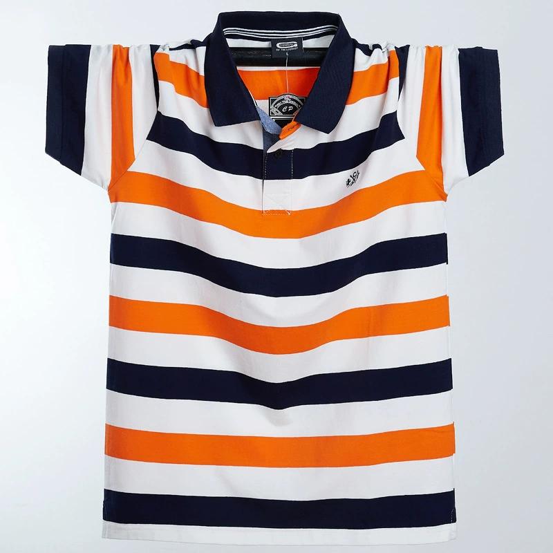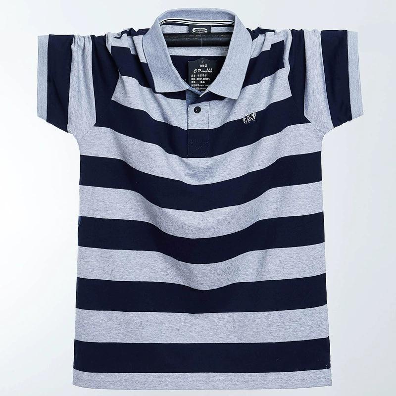 Мужская летняя футболка больших размеров с коротким рукавом, свободная полосатая рубашка-поло с лацканами