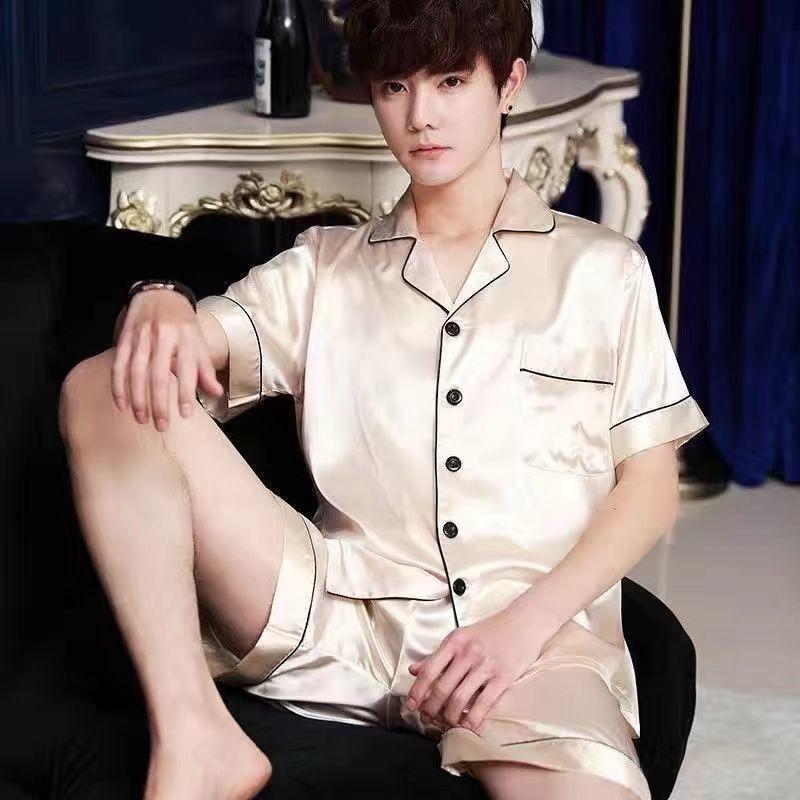 Пижама из ледяного шелка, мужской летний тонкий кардиган, шорты с короткими рукавами, молодежный домашний костюм, имитация шелка