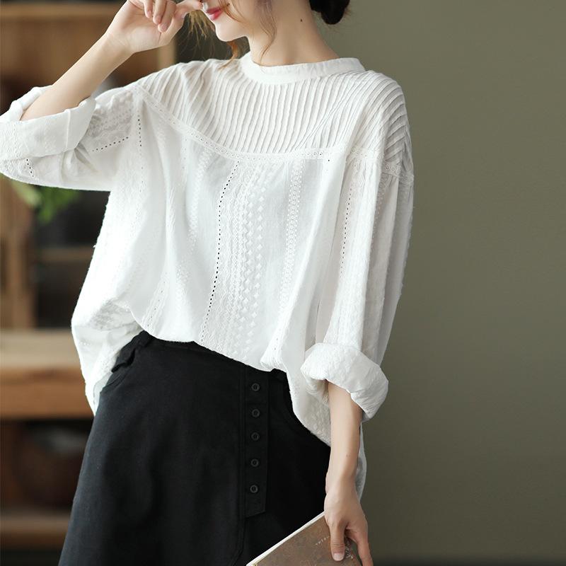 Женская весенняя кружевная рубашка с длинным рукавом, женский однотонный свободный пуловер — купить товар онлайн с бесплатной доставкой по всему миру!