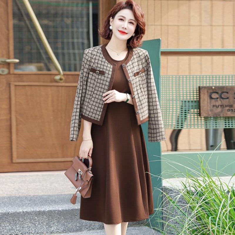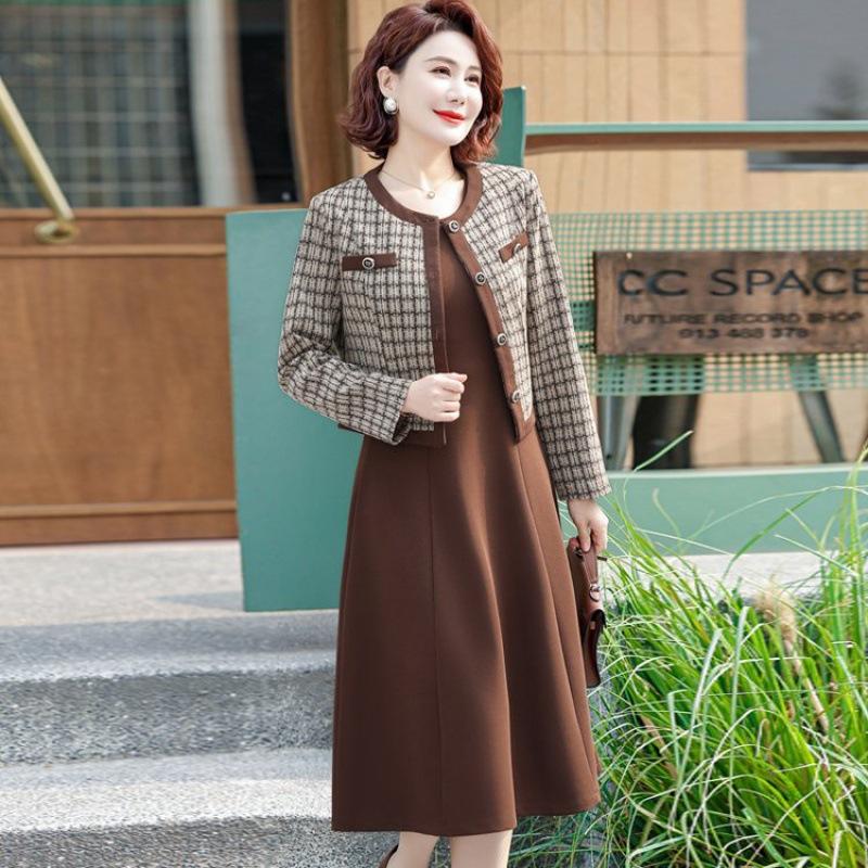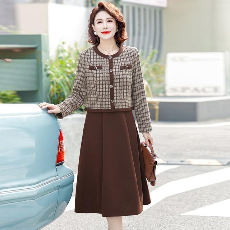 Весенне-осенний костюм-двойка в стиле «Маленькие духи» для женщин среднего и пожилого возраста