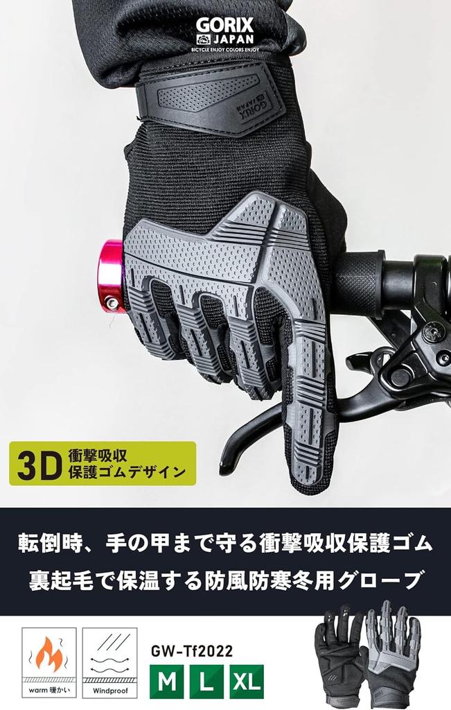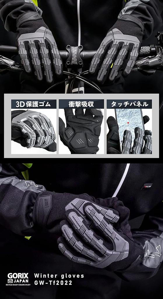 GORIX Cycling Gloves Bicycle Cold Protection Winter Gloves Road Bike Warm Brushed Lining (GW-TF2022) (XL)