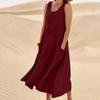 Летнее женское платье из хлопка и льна без рукавов с круглым вырезом и карманами — купить товар онлайн с бесплатной доставкой до всему миру!