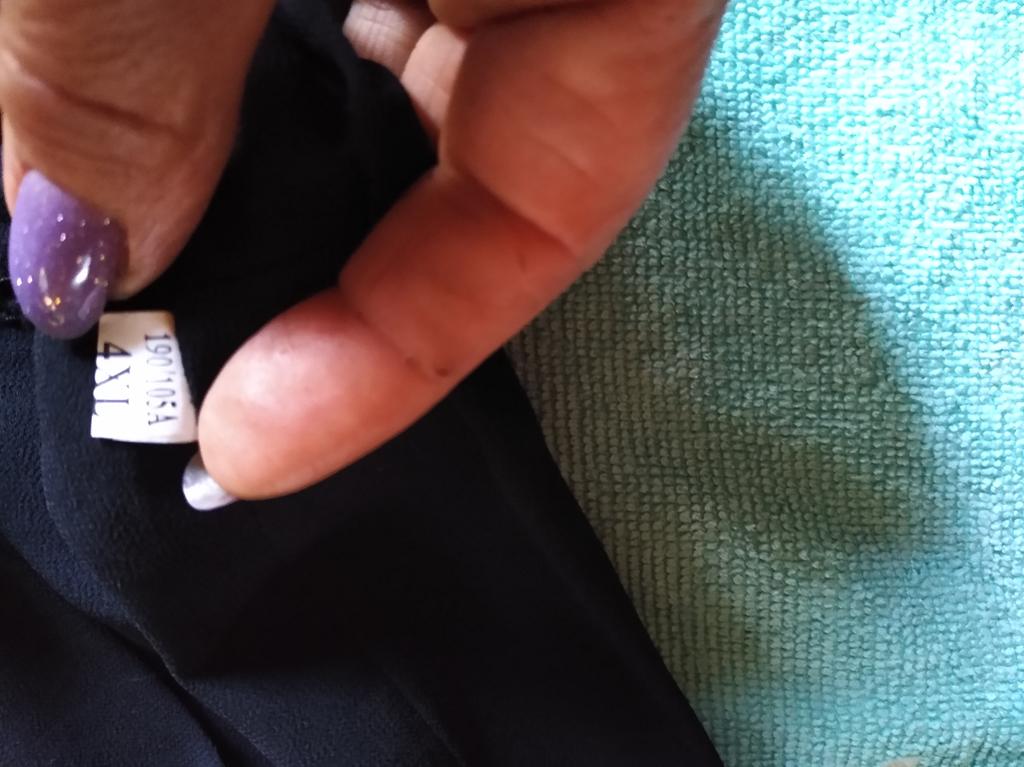 Ращмер Lнормально на 44. Почему то была отрезана бирочка вместе с кусочком брюк. Хорошо,что дырку можо незаметно зашить. Но непонятно,к чему это?