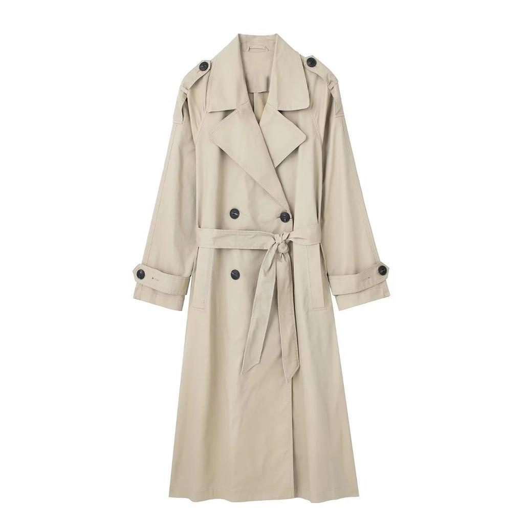 Осень-весна, женский однотонный двубортный тренч с поясом, винтажный воротник с лацканами, длинные рукава, женский шикарный женский жакет